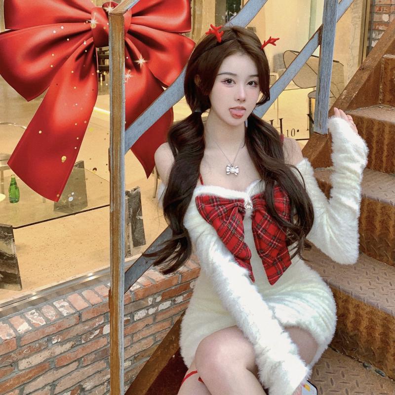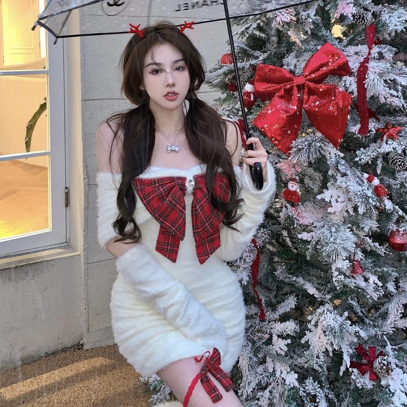 クリスマスコフレ サンタコスプレ クリスマス セクシー リボン本 身を修める ニットワンピース クリスマススカート クリスマス コスチューム
