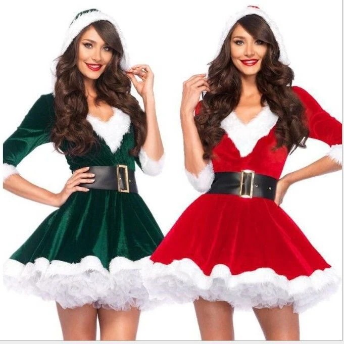 クリスマスコフレ サンタコスプレ クリスマス 欧米のクリスマス 大人ワンピース サンタクロース クリスマスツリーのコスプレ Vネックの服 クリスマス コスチューム