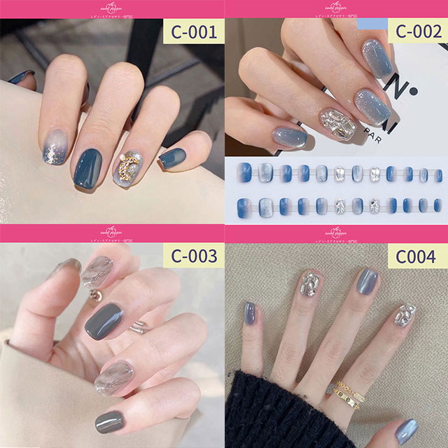 ネイルチップ 国内発送 グラデーション キャッツアイ フレンチネイル 24爪付け 1秒簡単貼れる 両面テープ付き 繰り返す利用可能