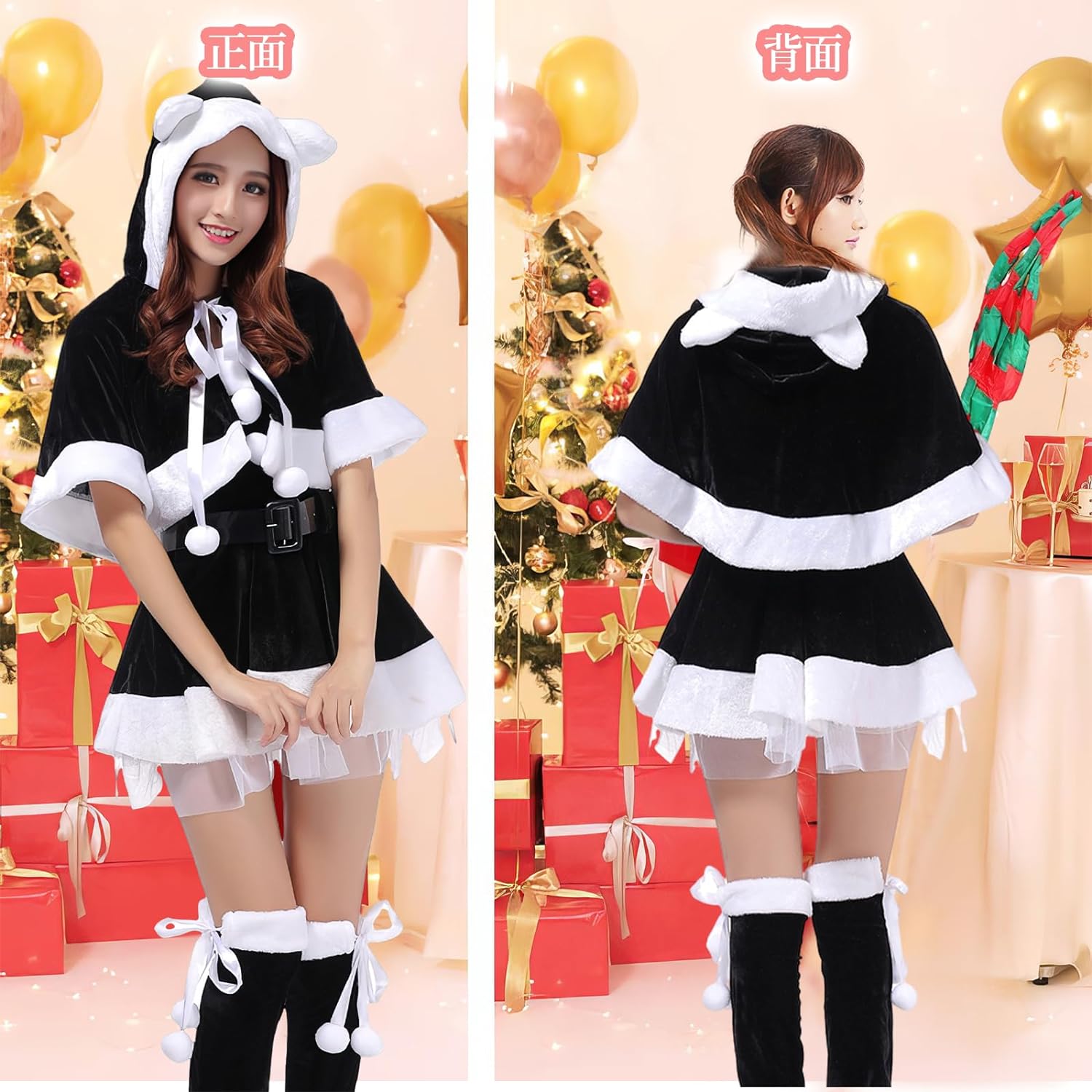 クリスマスコフレ サンタコスプレ レディース 黒サンタ 6点セット ネコ耳 ポンチョ クリスマス サンタ コスプレ 黒 セクシー ブラックサンタ クリスマスコスプレ サンタコス サンタ衣装 コスチュー