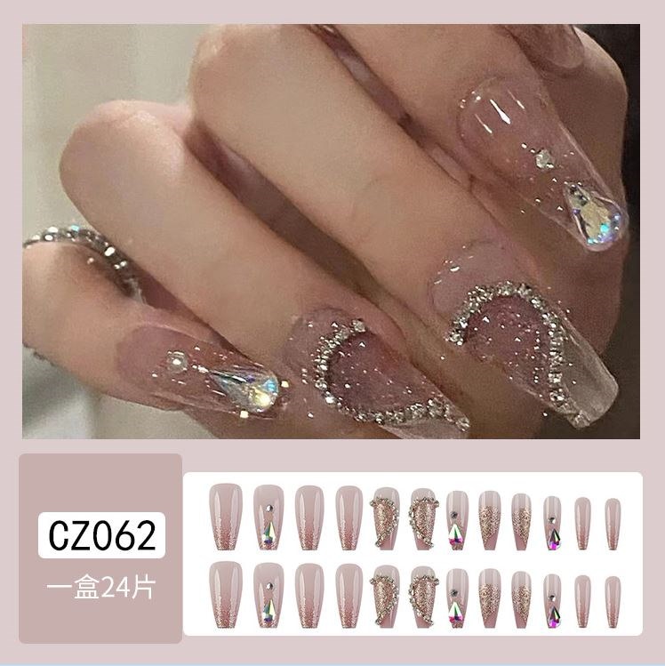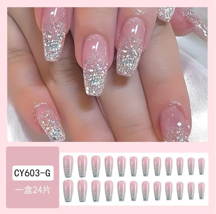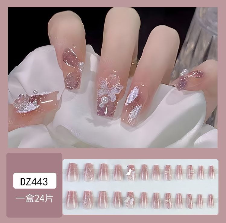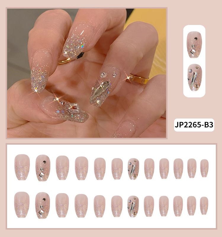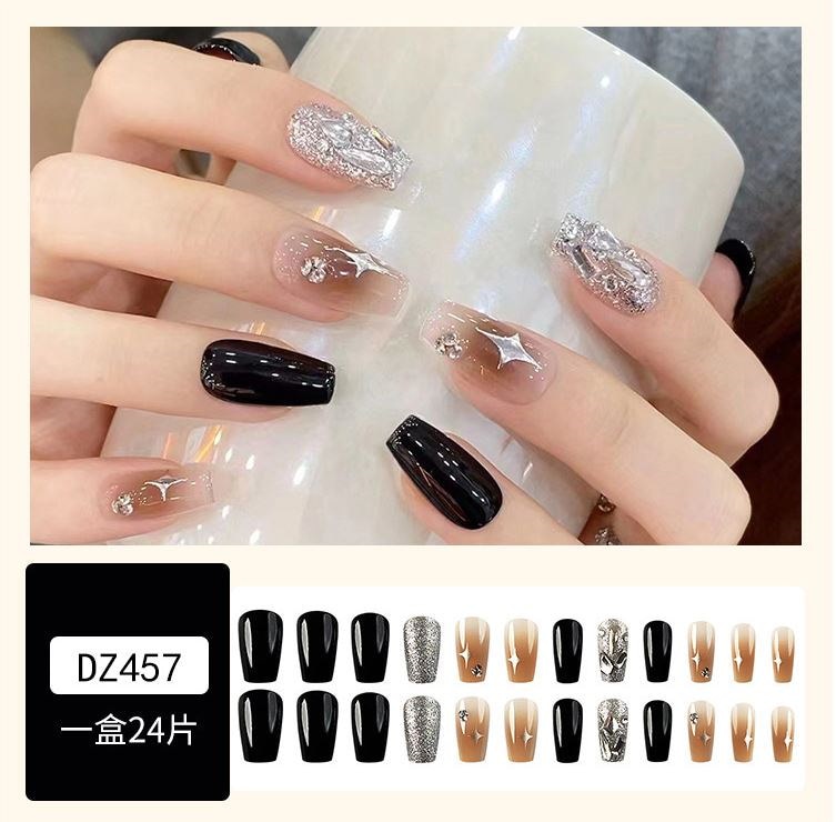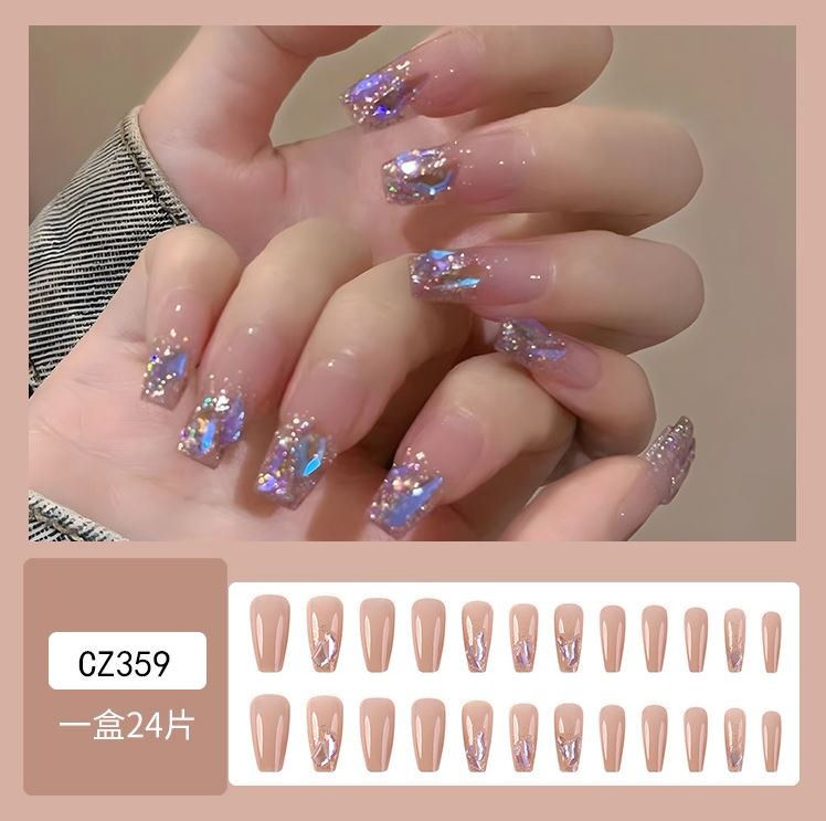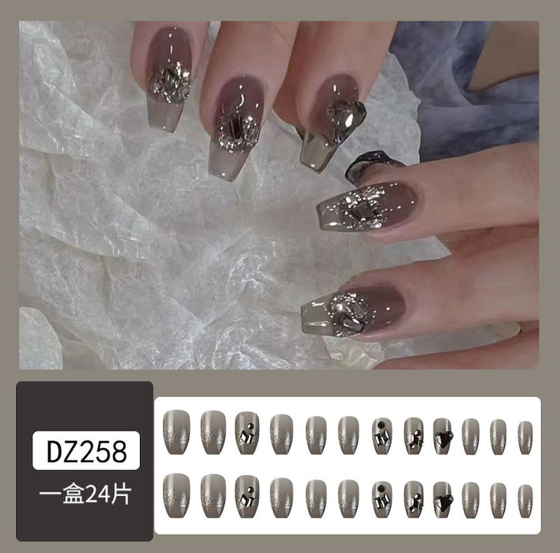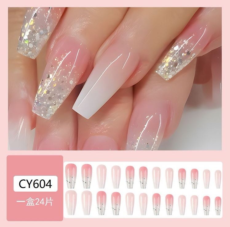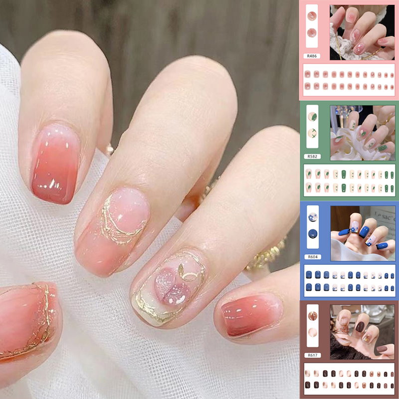 ネイルチップロング 24爪付け 簡単に貼れる チップ用のり付きネイルシール 韓国ファッション