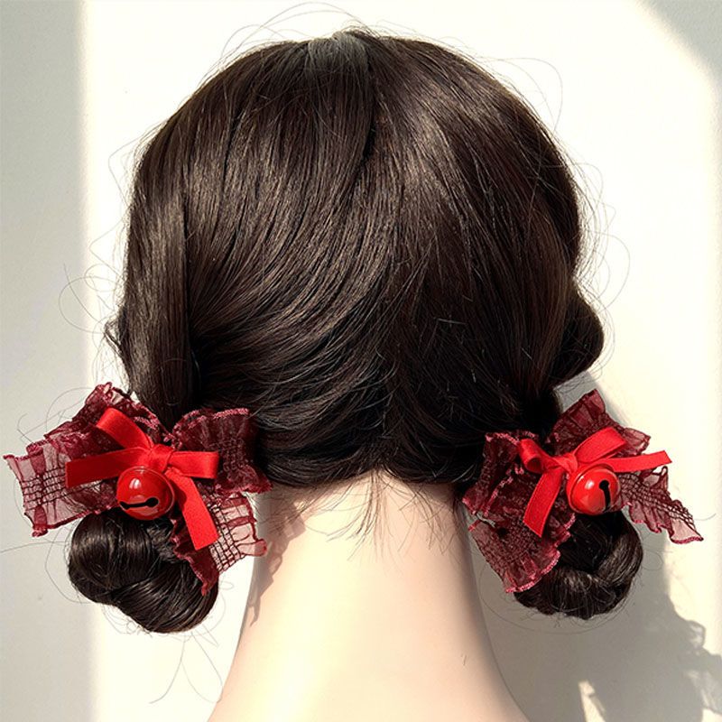 クリスマス 新年 赤 リボン本 鈴 ヘアピン本 サイドエッジ 毛むくじゃら クリップ本 毛玉ヘアバンド クリスマス