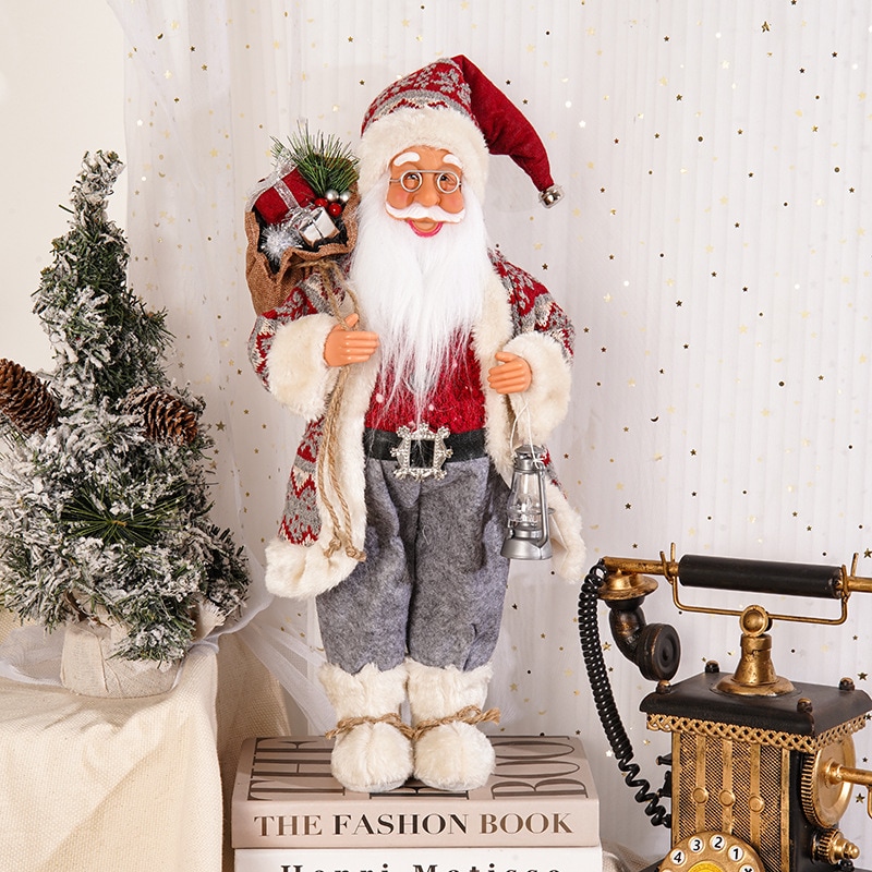 18インチ クロスボーダー 新品サンタクロース スノーブーツを履いたリュックサック 立ち老人 人形 置物 クリスマス装飾品 ストライプ 人形の立ち姿 公仔 サンタクロース