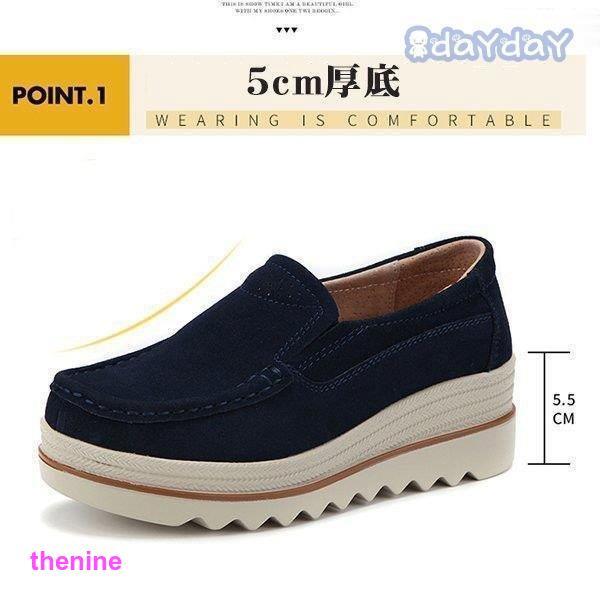 レディースシューズ 厚底スニーカー ローファー 看護師 婦人靴 スエード スリッポン 身長アップ 美脚 軽量 通勤 防滑 オフィス 疲れない