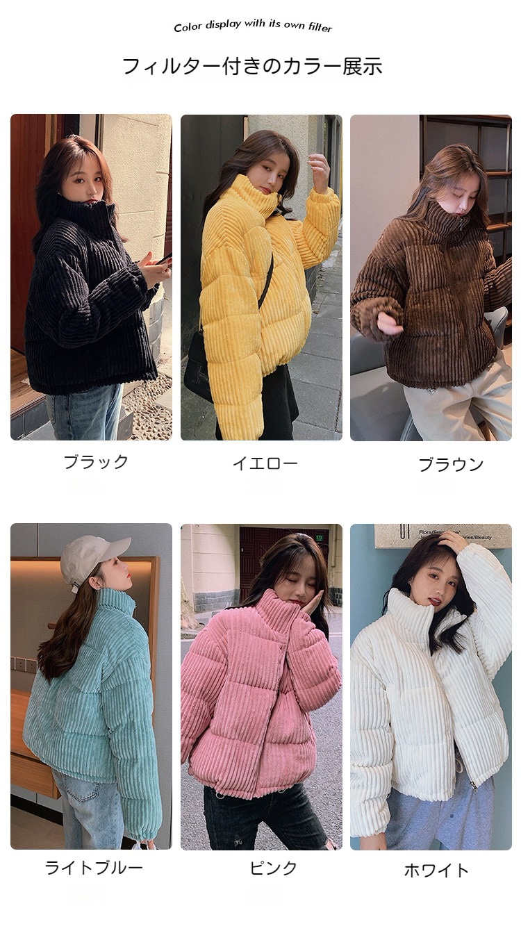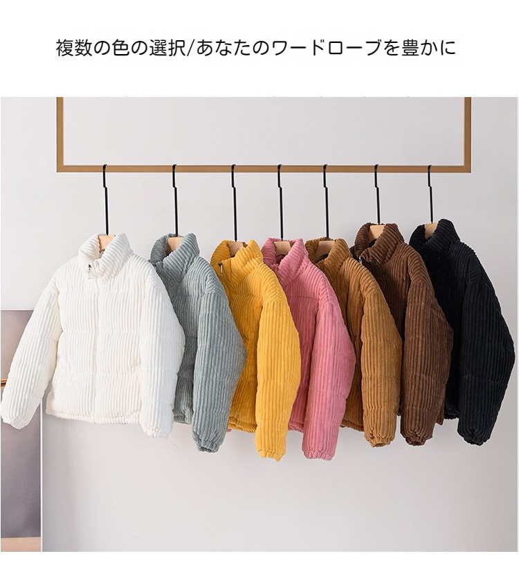 コーデュロイ中綿ジャケット 無地 ミドル ファスナー ダウンジャケットコート レディース韓国ファッション ダウンジャケット コート