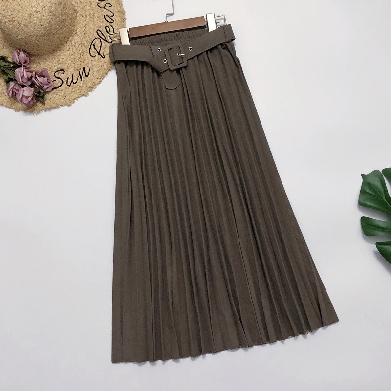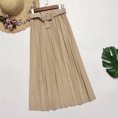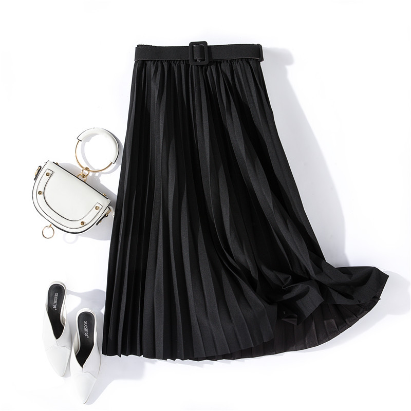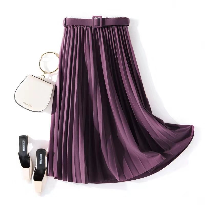 新色追加 ベルトを贈る 新作生地ドレープ風プリーツスカートハイウエストラージスカートスカートマルチカラーミドル丈コミューター