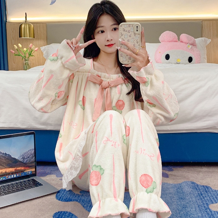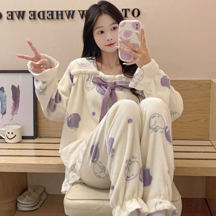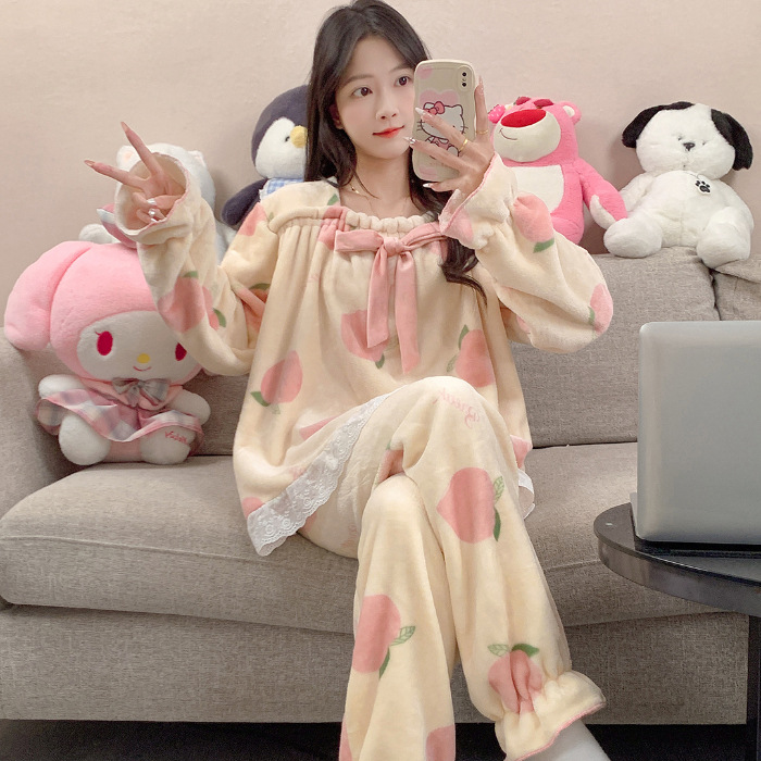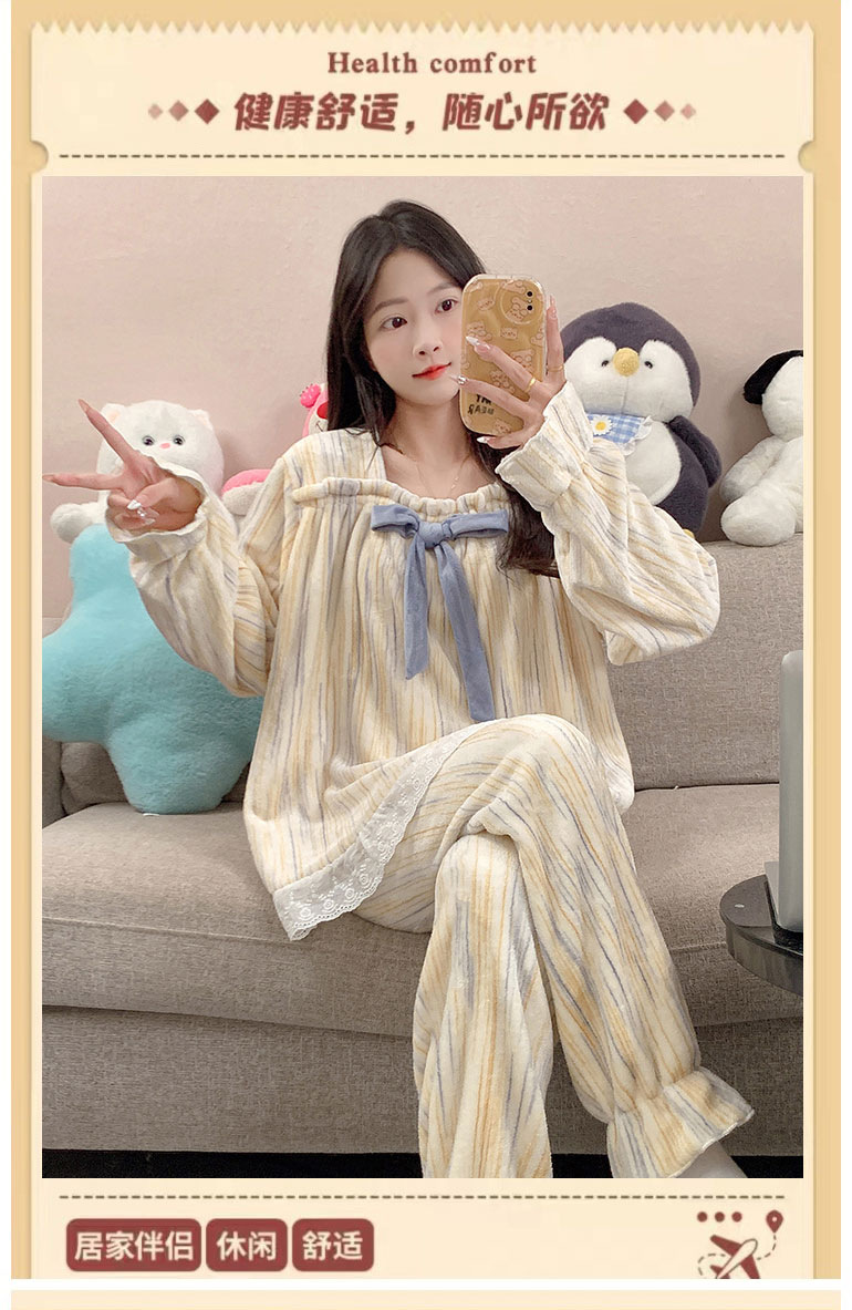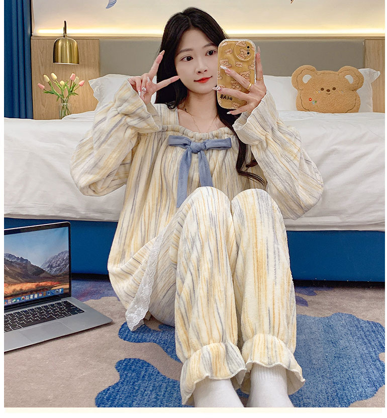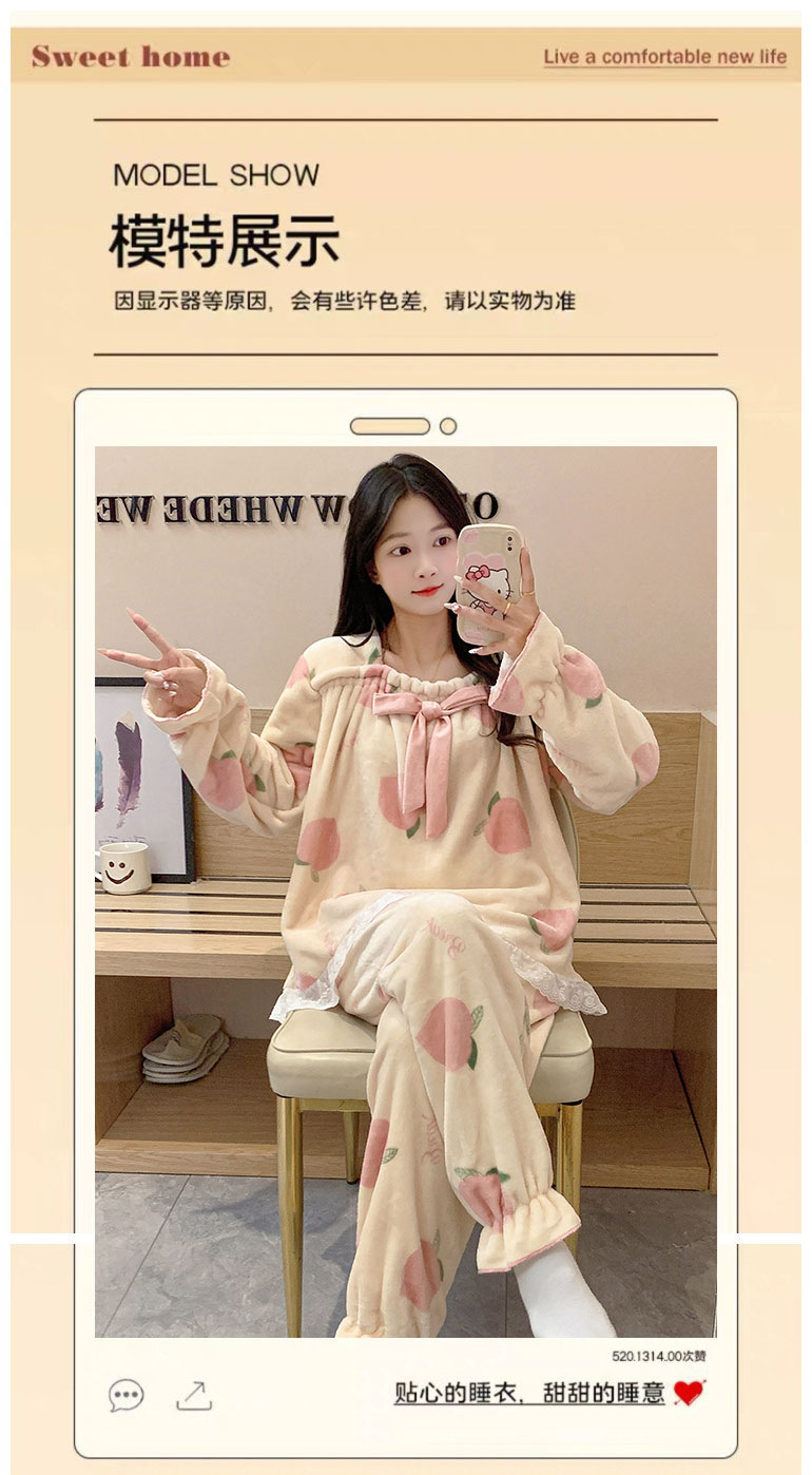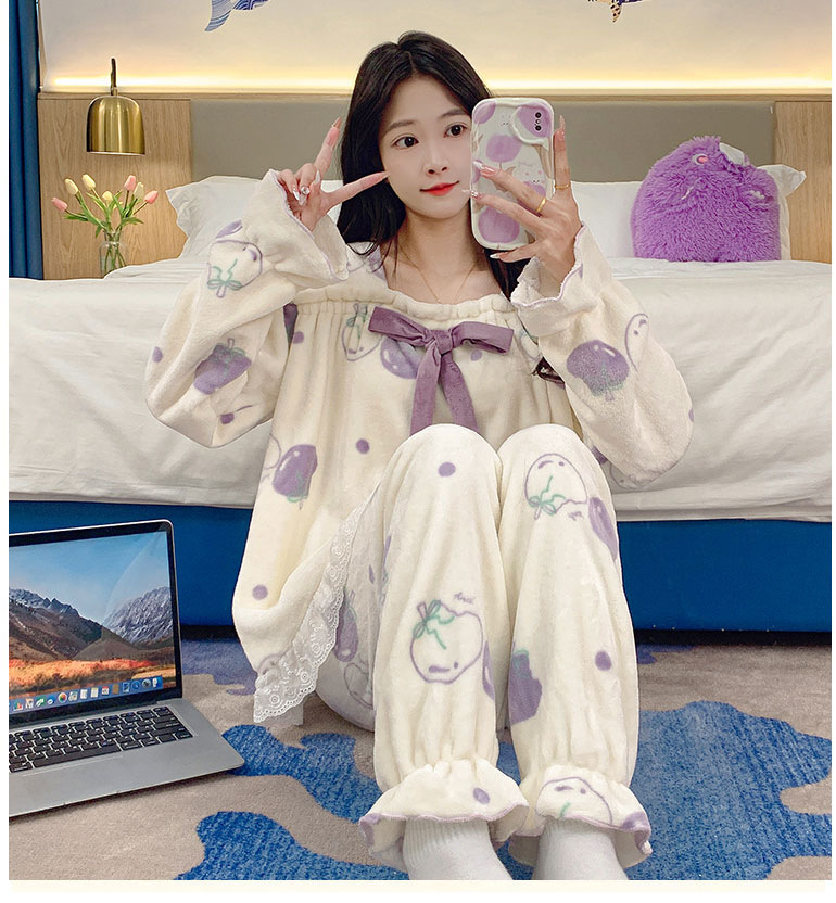 二点セット パジャマ コーラルフリース 厚手 保温 可愛い セットレディース ナイトウェア 秋冬 コーラルフリース 上下セット パジャマ クリスマスプレゼント