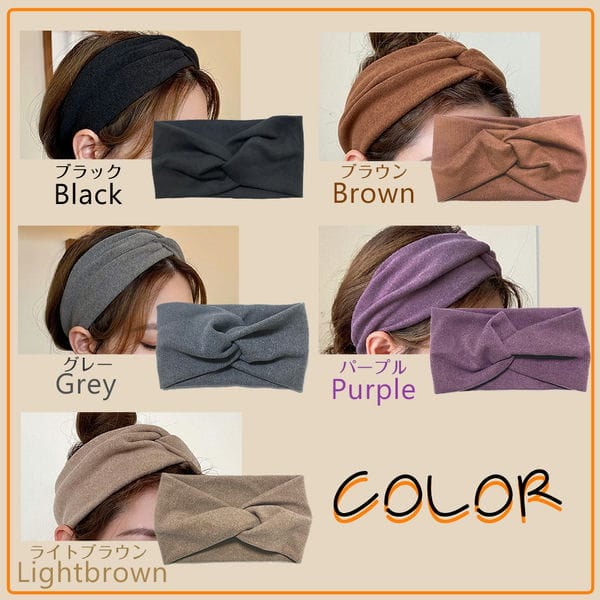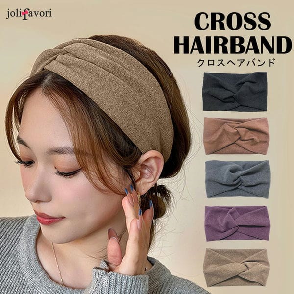 ヘアバンド クロス シンプル ヘアアレンジ まとめ 洗顔 かわいい スモーキー カラー おしゃれ ヘア バンド 髪 ターバン ブラック ブラウン グレー パープル ライトブラウン