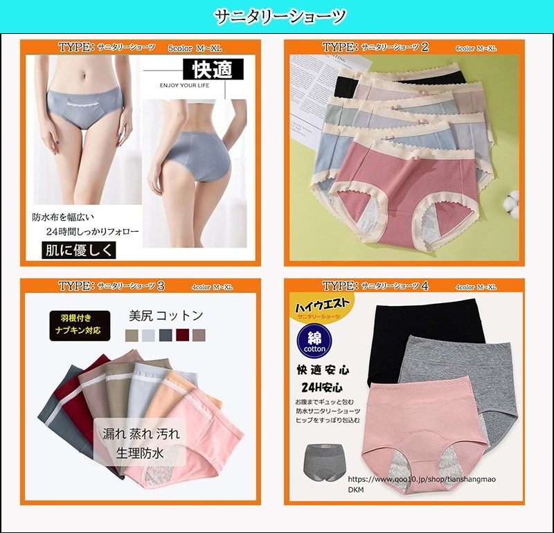 タイプ: サニタリーショーツ サニタリーショーツtype2 羽根付サニタリーショーツtype3 サニタリーハイウエストtype4