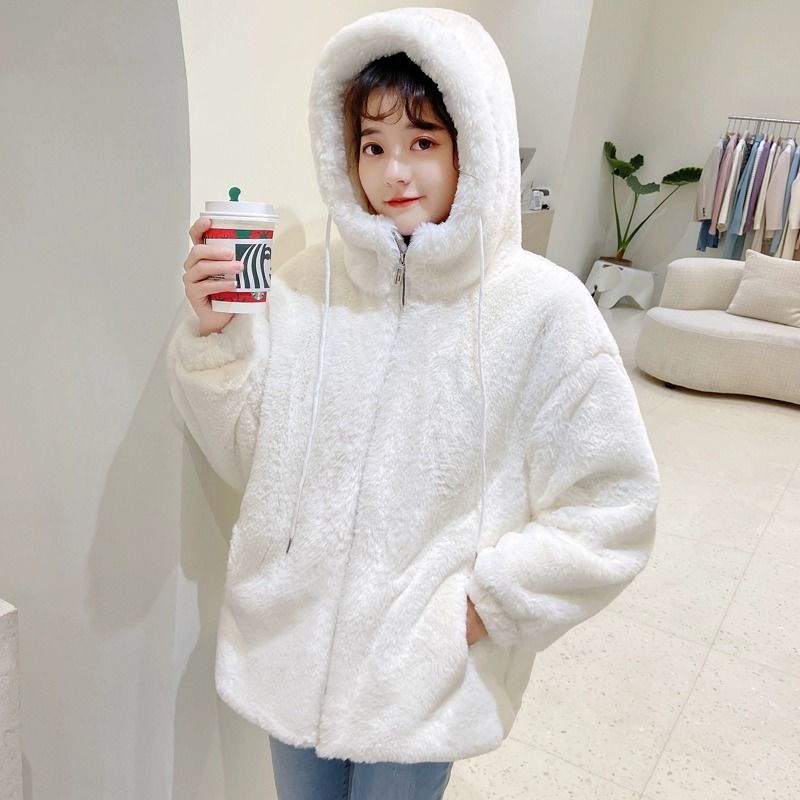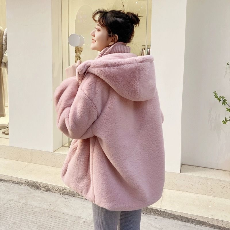 2024冬の新しい模造ウサギの毛皮のビロードの毛皮の短い若い方法厚くされたラムのウールのコートの女性の毛皮のコート トレンチコート