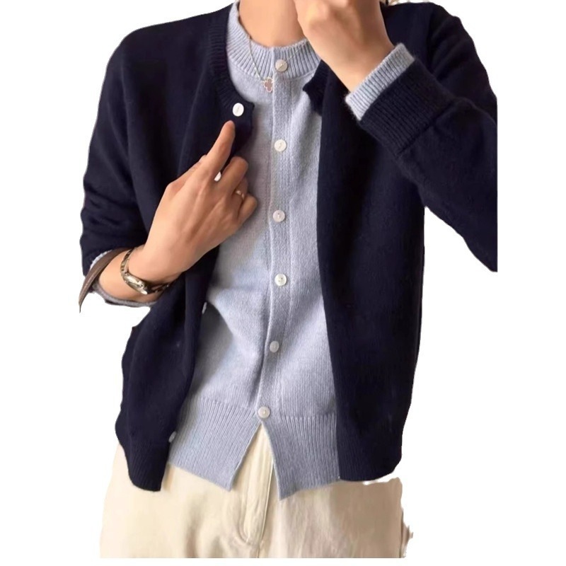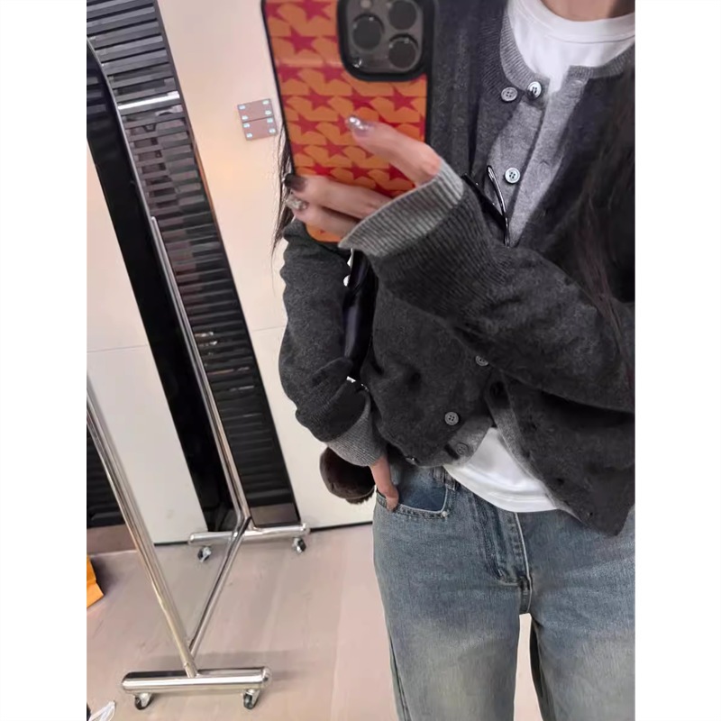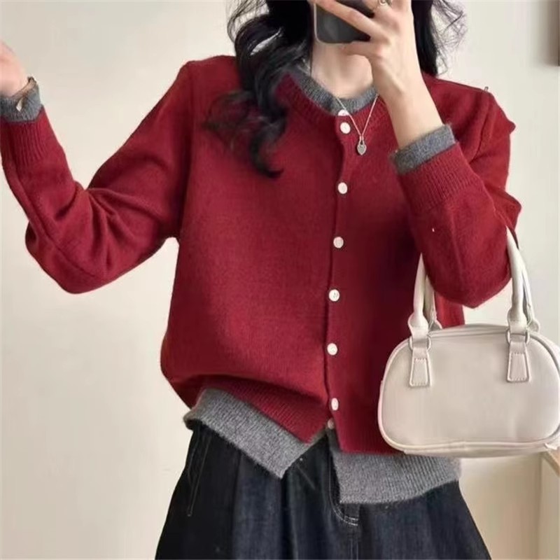 フェイク2枚のニットカーディガン女性2024早秋の新作韓国系着重ね着セーターのけだるい風トップスコート ニット