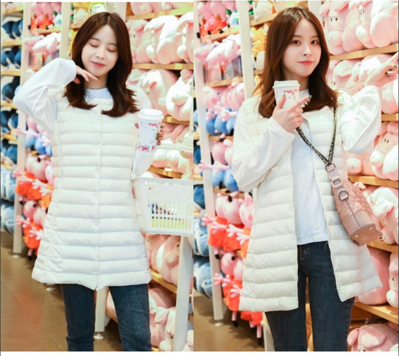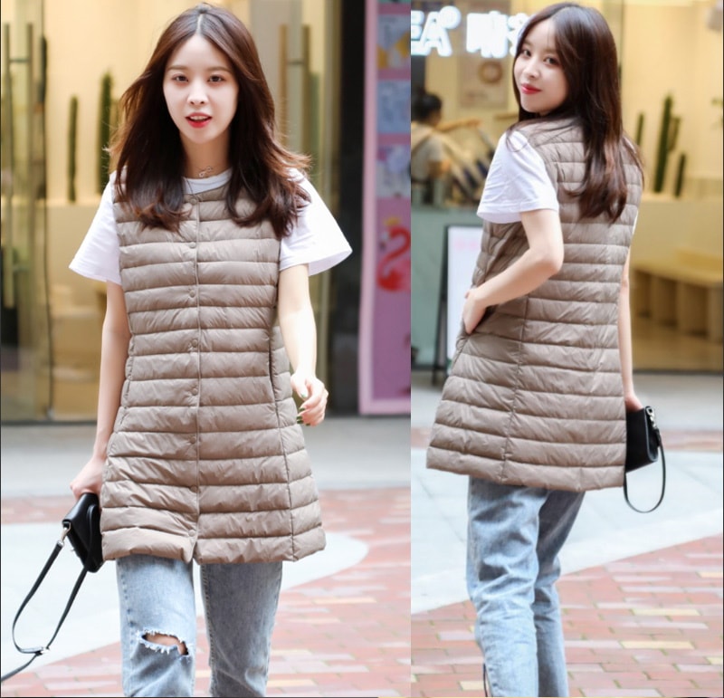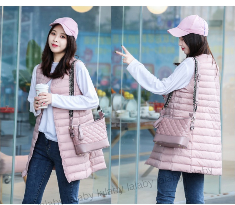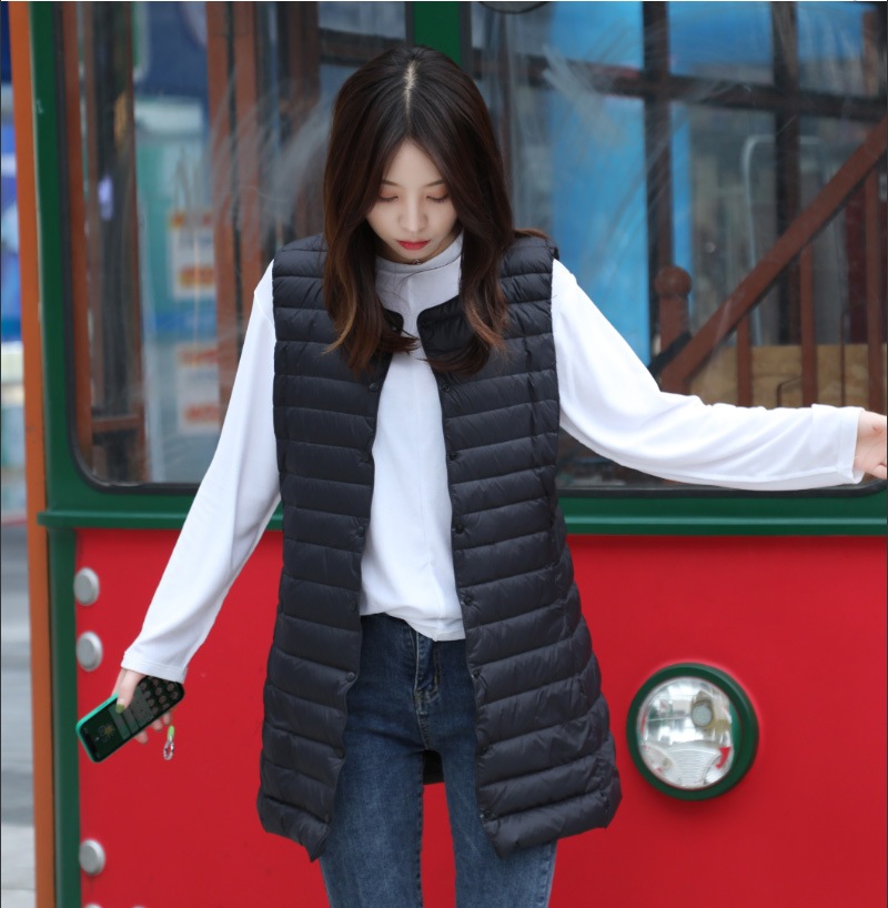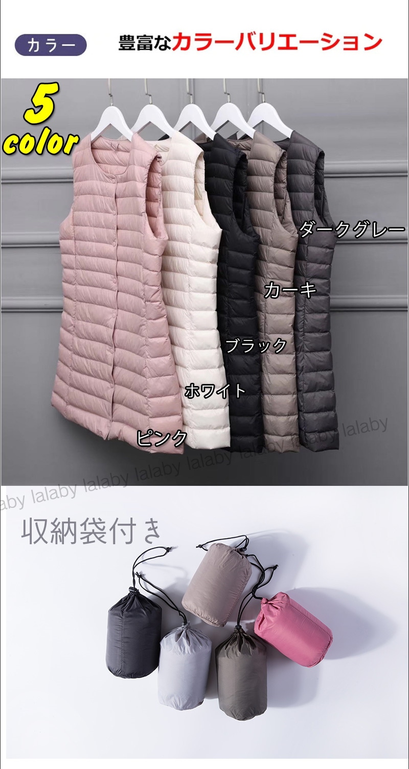 秋新作 ダウンロングベスト インナーダウンベスト 品質90%ダウン ウルトラライトダウン ダウンジャケット 体型カバー レディース 暖かい 防寒 軽量 収納袋付 5color