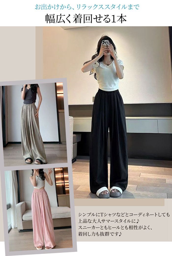 2024改良型 ワイドパンツ レディース 冷感 ロングパンツ 肌触り 速乾 オーバーサイズ 体型カバー 薄手 UVカット ガウチョパンツ パンツ 着痩せ 低身長 高身長