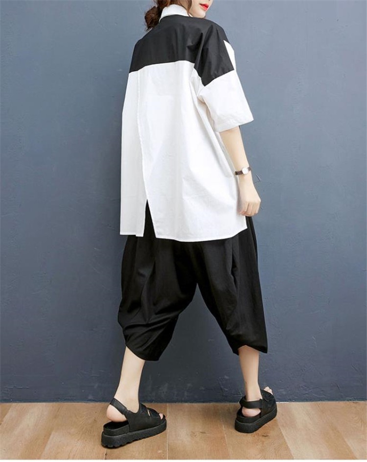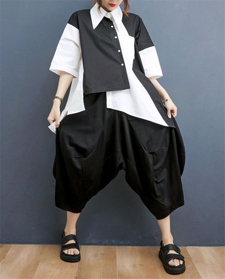 今日更新2点セットレディースセットアップ イレギュラーシャツ+ワイドレッグパンツ カジュアルな場や通勤 上下セット パンツスーツ