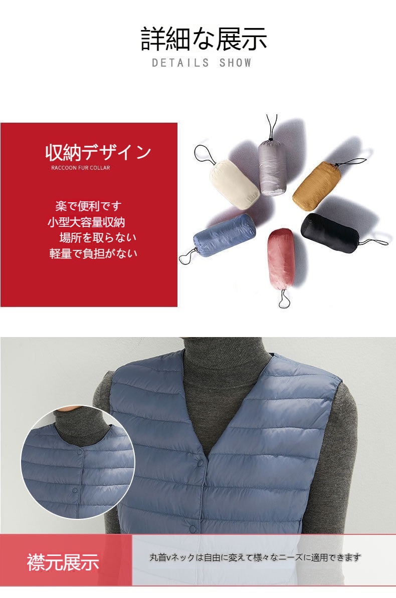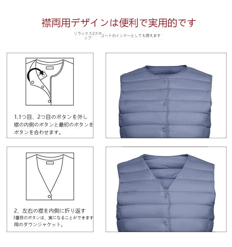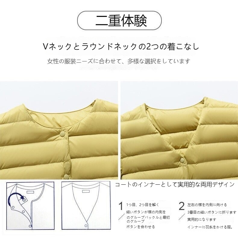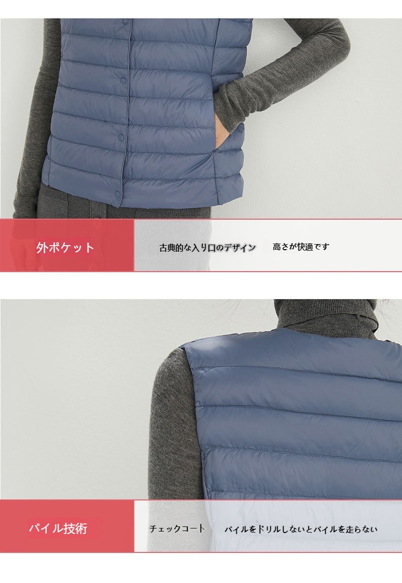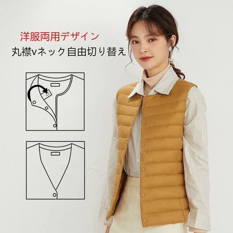 ダウンベスト ロング レディース ゴルフ コンパクト 前ボタンタイプ ダウン80% フェザー20% 軽量 ライトダウン 秋冬 薄手 ポケッタブル インナーダウン 登山 山登り