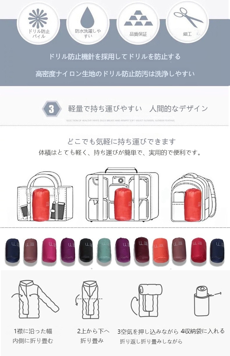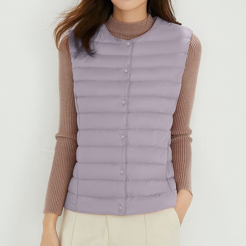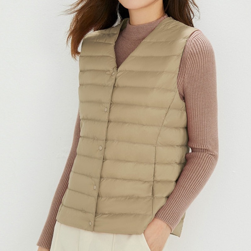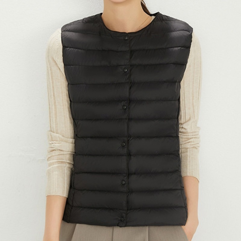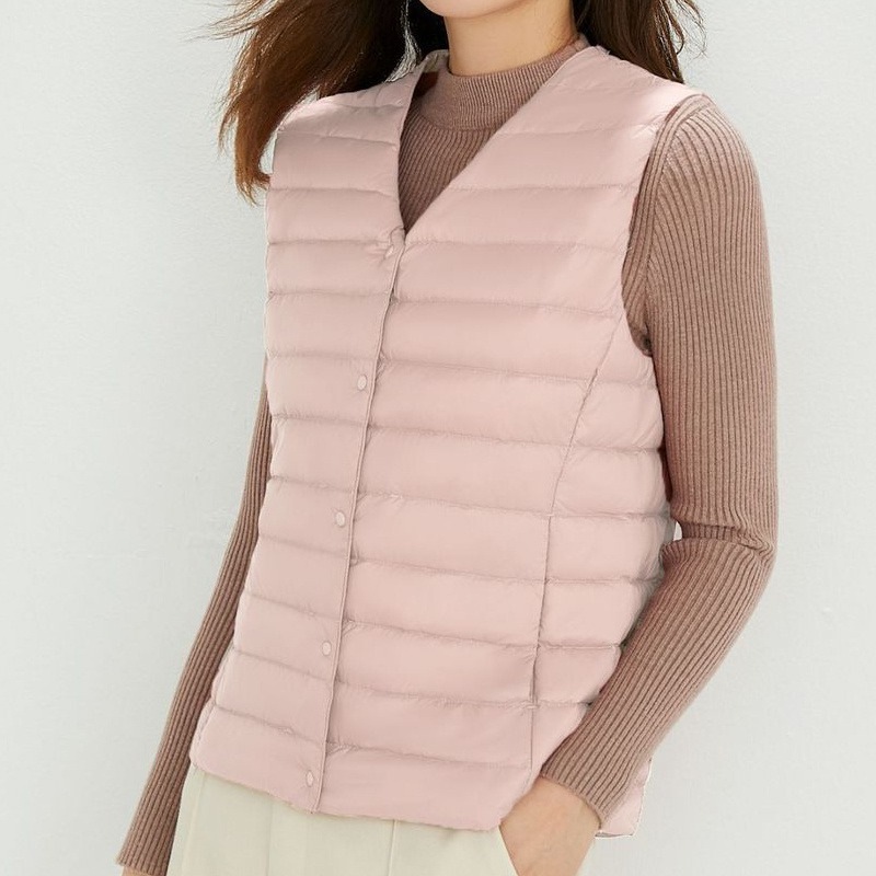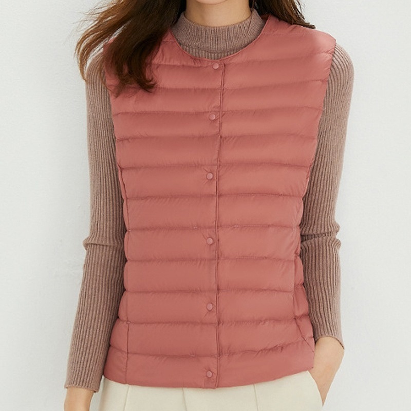ダウンベスト ロング レディース ゴルフ コンパクト 前ボタンタイプ ダウン80% フェザー20% 軽量 ライトダウン 秋冬 薄手 ポケッタブル インナーダウン 登山 山登り