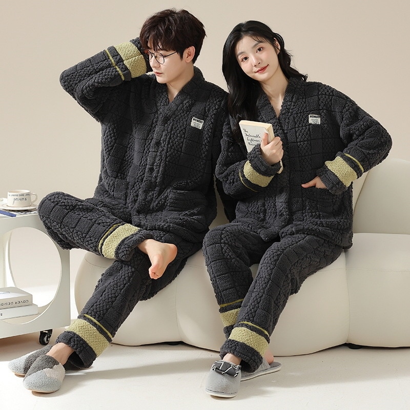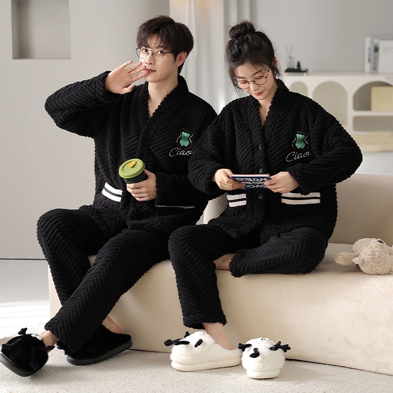 パジャマ カップルペアルック ルームウェア フランネル 冬 ペアパジャマ長袖パジャマペアルックお揃いレディースメンズ ネグリジェ レディース 単品売り