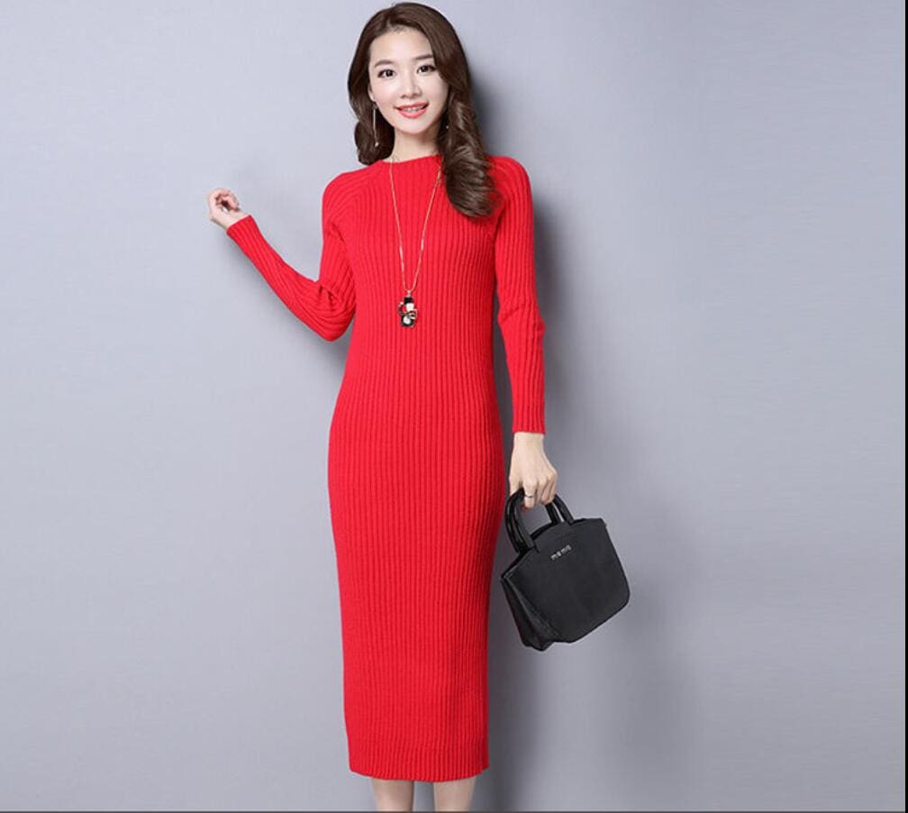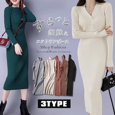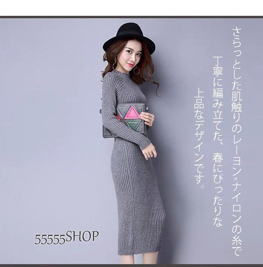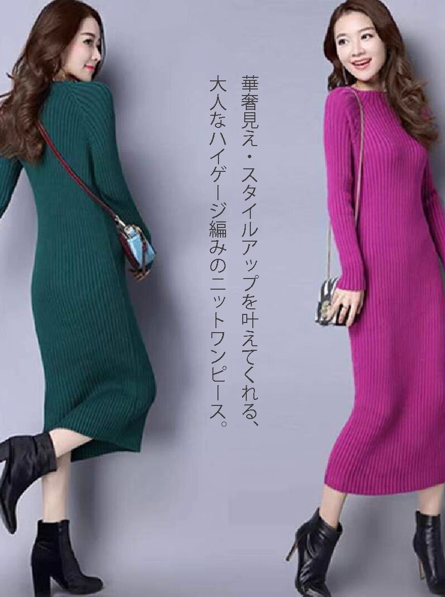 5000件以上販売SALE 品貭保証 春 ロングワンピース 気質 着やせ ニットワンピース 綺麗 ニットワンピ