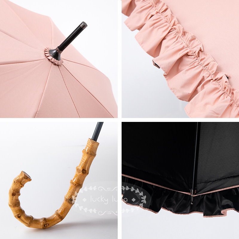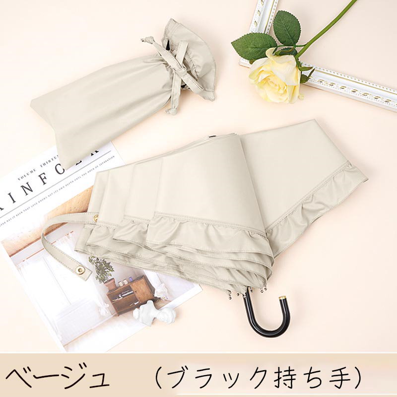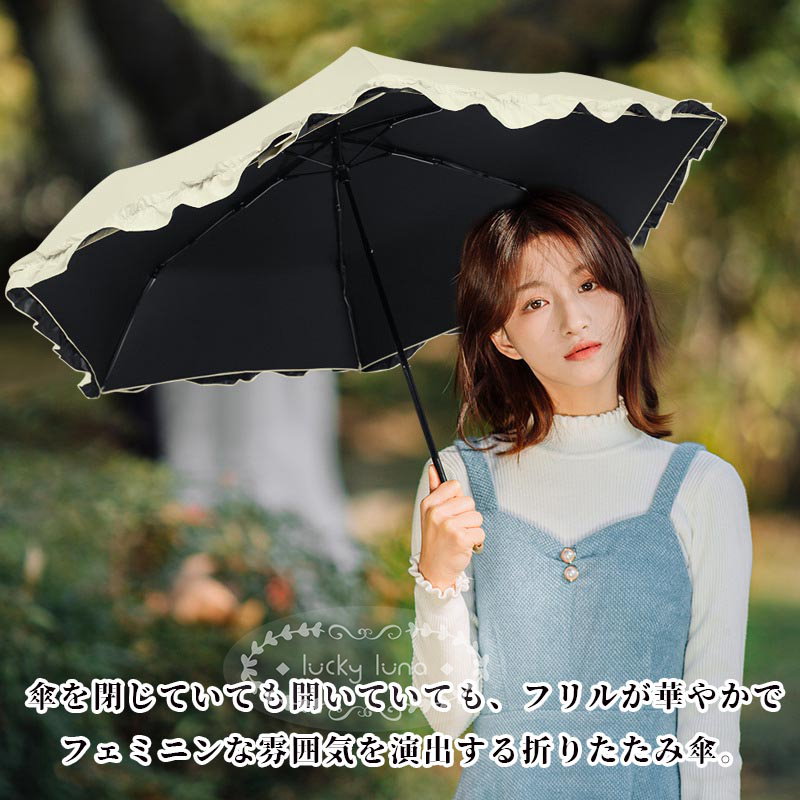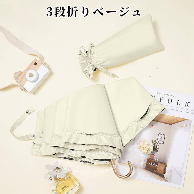 新品登場 日傘 完全遮光 フリル 長傘 3段折り 晴雨兼用 折りたたみ傘 軽量 撥水 バンブー 遮光率100% 遮熱 おしゃれ 傘 雨傘 内側 黒 UVカット 高級感 レディース 梅雨対策