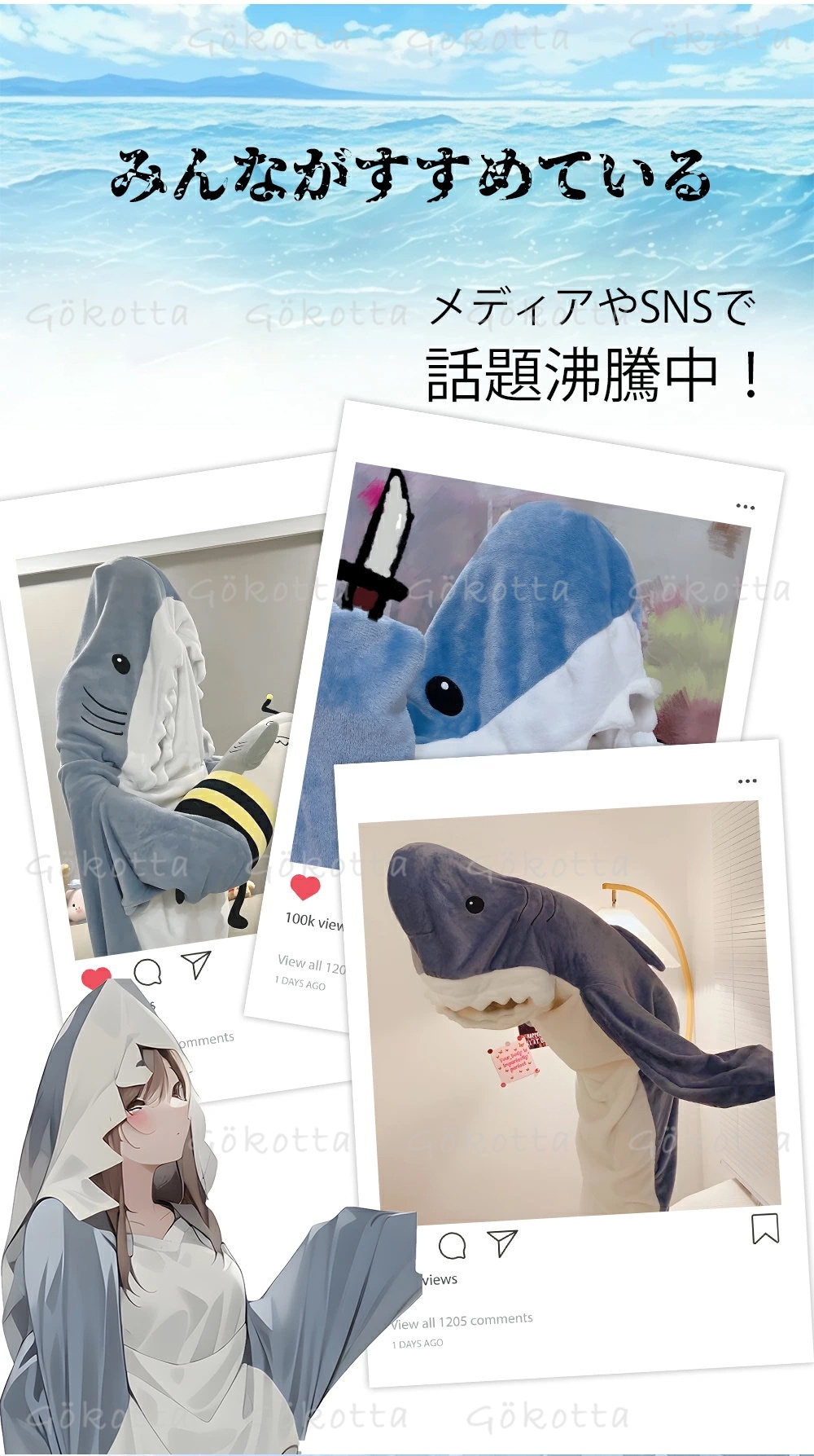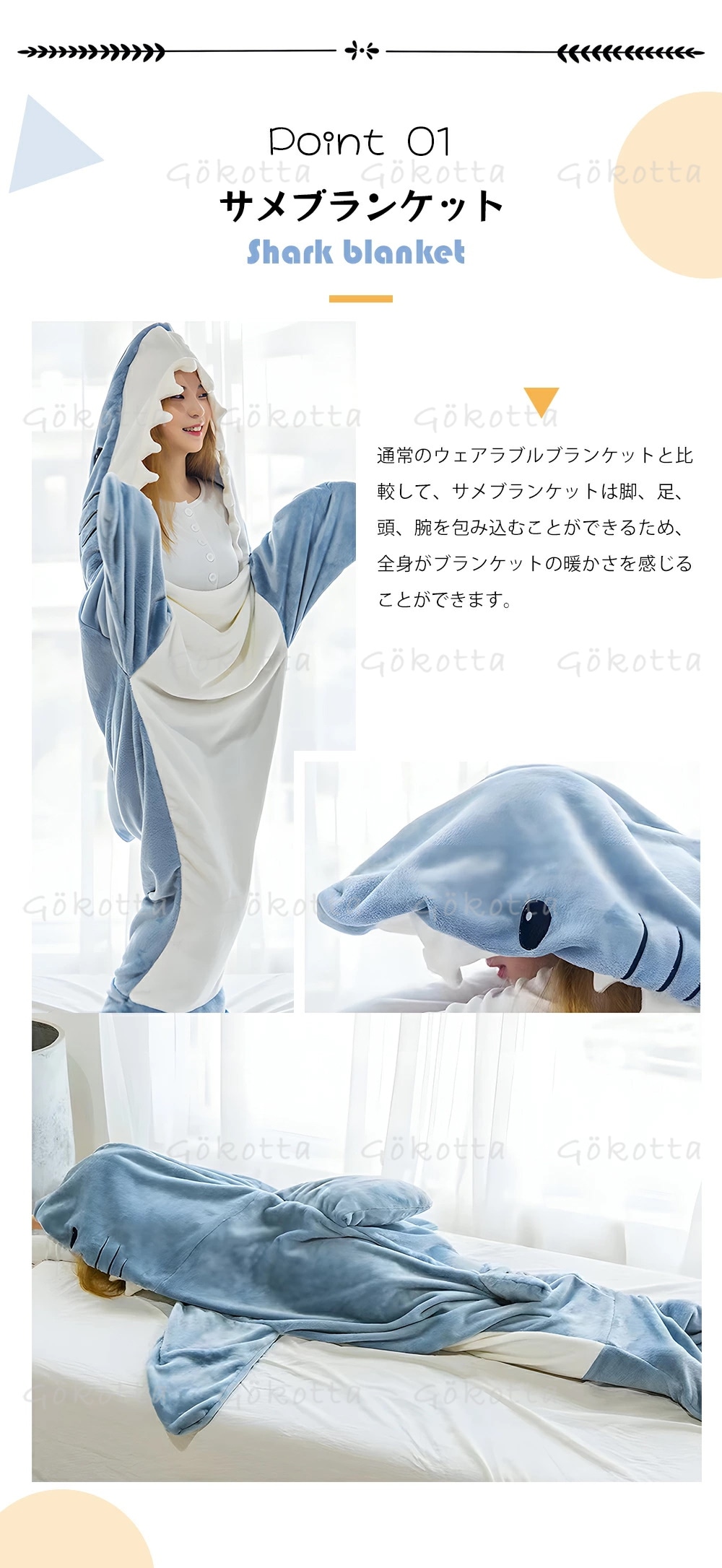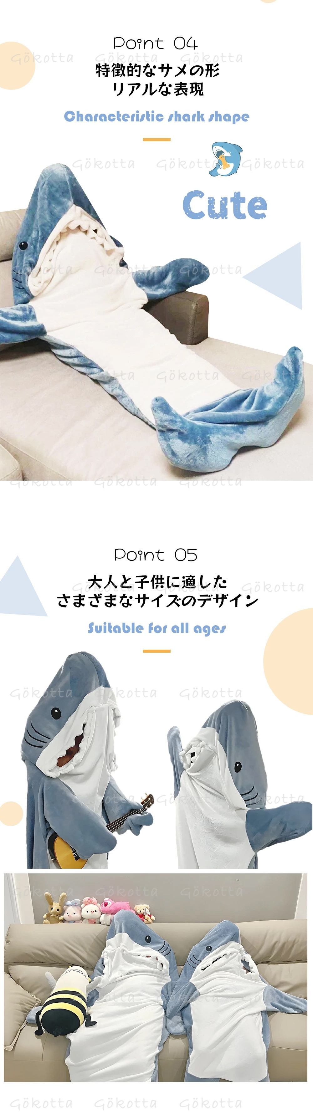 SNSで大人気 サメ寝袋 サメ 着る毛布 メンズ ブランケット サメ きぐるみ 大人用 子ども用 かわいい ふわふわ パジャマ ルームウェア 寝袋 暖かい 柔らかい 防寒 お昼寝 冷房対策