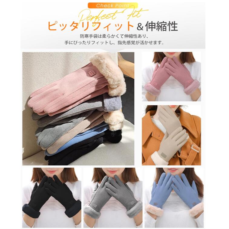 手袋 手ぶくろ グローブ スマホ手袋 レディース 韓国 冬 かわいい タッチパネル スマホ対応 モコモコ 防寒防風 撥水加工 裏起毛 裏フリース 厚手 保温 アウトドア スポーツ 快適操作