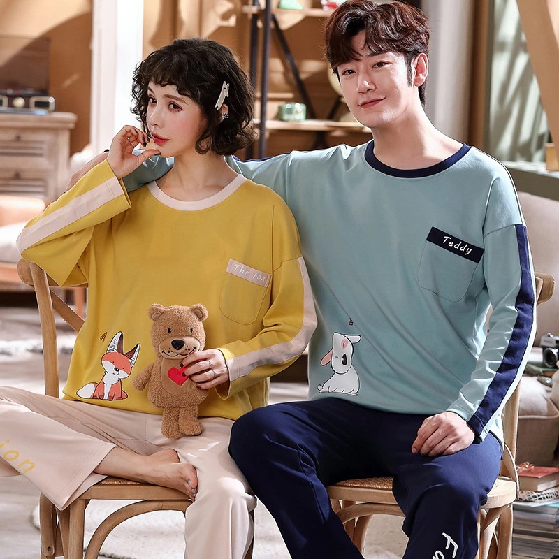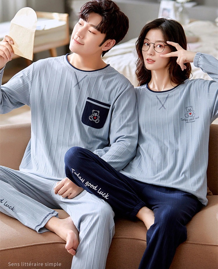 2点パジャマ カップルペアルック 長袖 綿 ルームウェア 春秋冬 ペアパジャマ ロングズボンお揃いレディースメンズ 韓国風 セットアップ 新作 単品売り 男女
