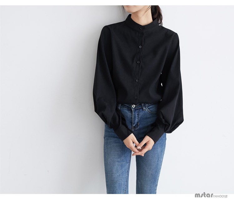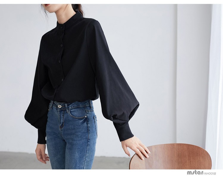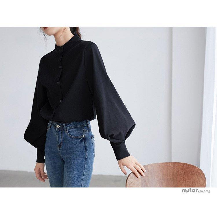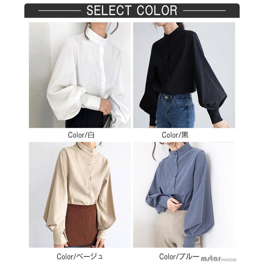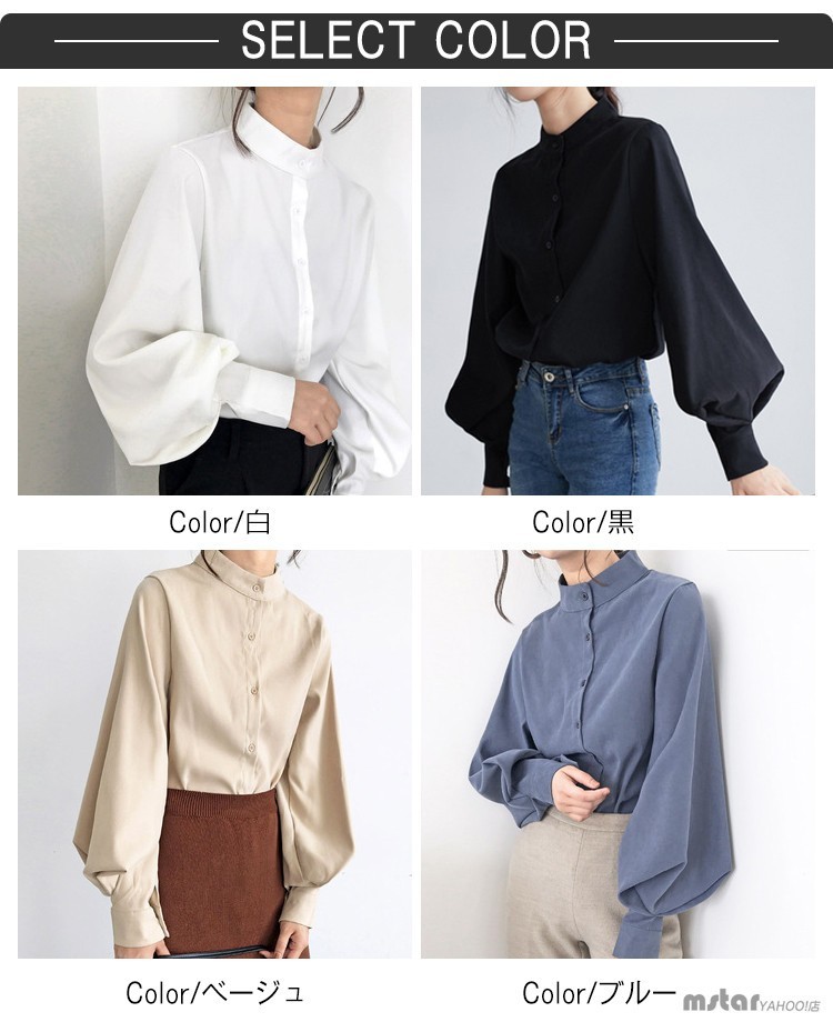 レディースシャツ立襟長袖フェミニンビショップスリーブスリム長袖通勤きれいめオフィストップス シャツ ブラウス