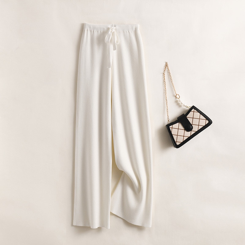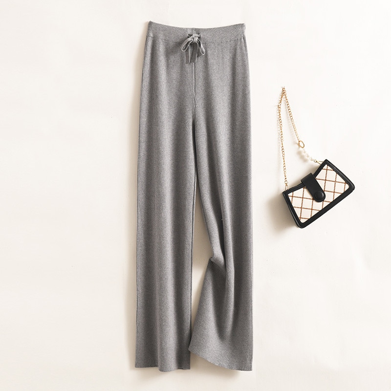ニットワイドパンツ女性秋冬新作韓国版ハイウエストソリッドカラーレジャー高弾性ストレートパンツ女性 ロングパンツ