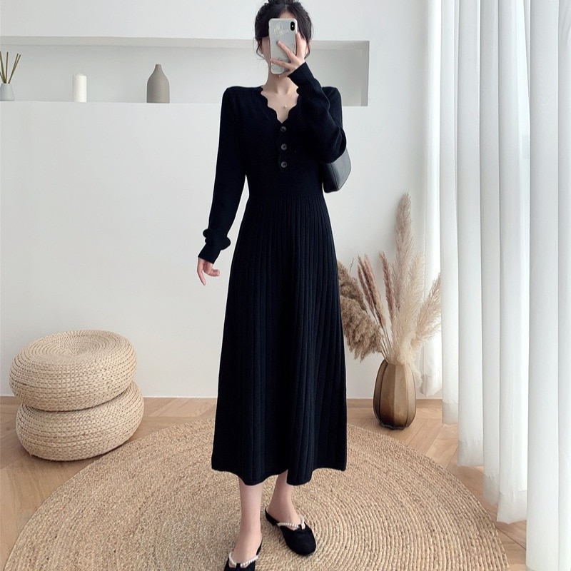 2024春秋 ワンピース レディース フェイクレイヤード 韓国 セミロング ゆったり カジュアル スウエット 長袖ブラックインナー 気質 着やせ 韓国ファッション パーティードレス