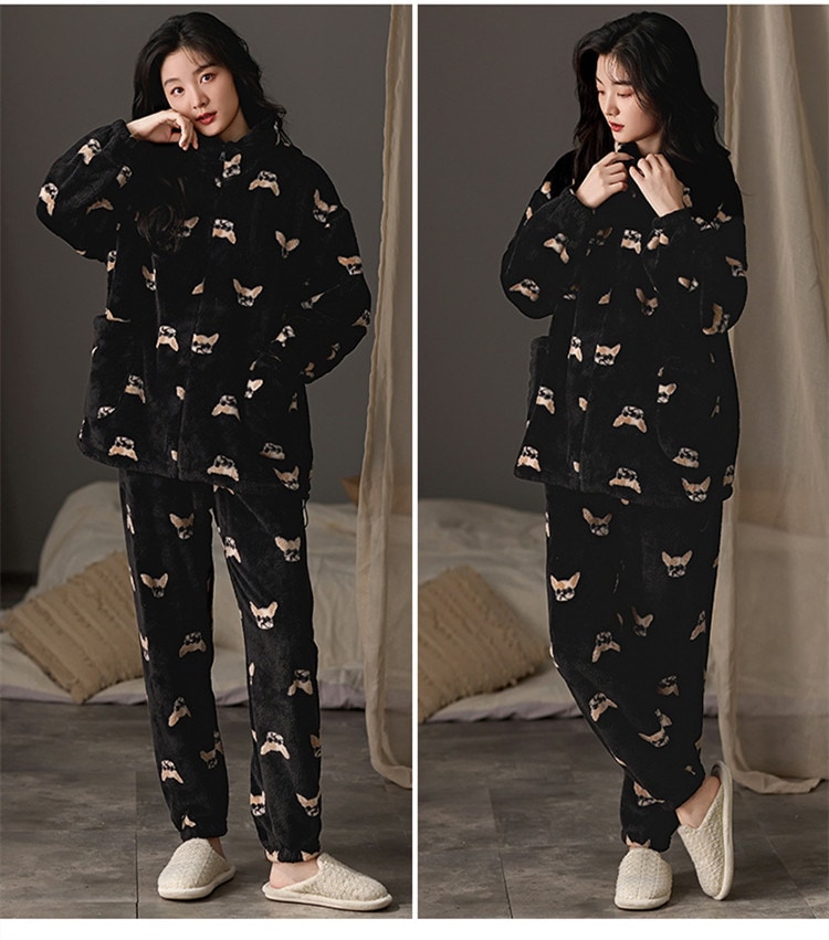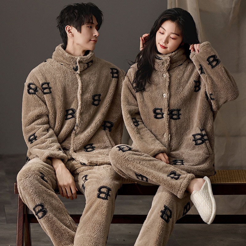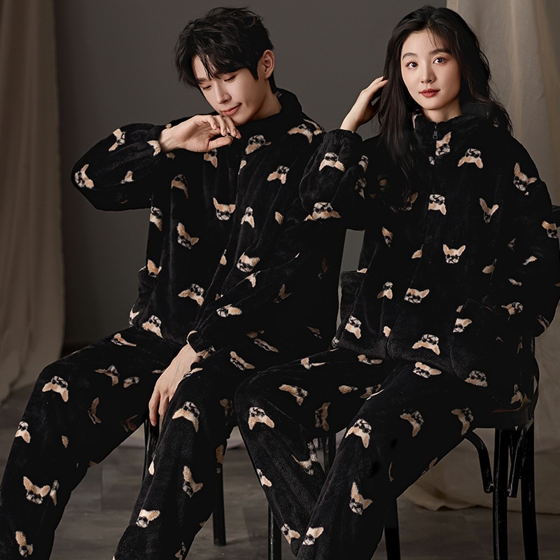 パジャマ レディース メンズ ルームウェア上下セット 可愛い 冬 寝巻き 部屋着 寝間着 フランネル セットアップ 長袖 厚手 韓国風 パジャマ