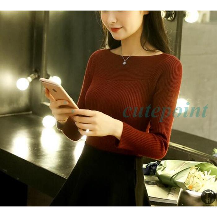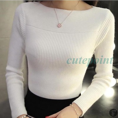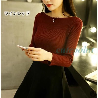 ニット ボートネック リブ編み タイト レデイース セーター シンプル インナー 秋 春 冬 新作 ニット