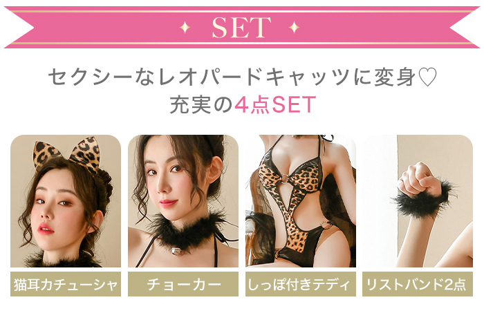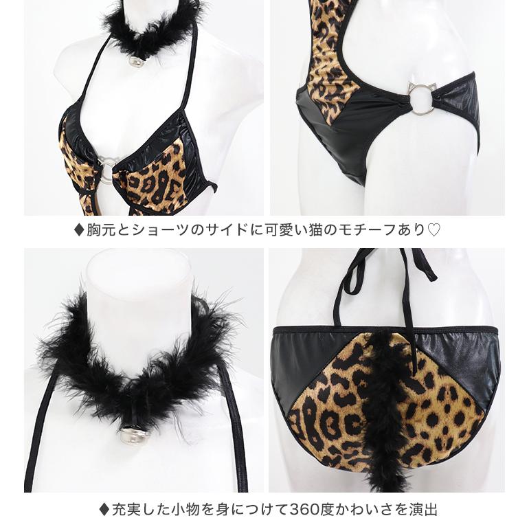 セクシー コスプレ 制服誘惑 アニマル レオパード コスチューム 女豹 衣装 ネコ 猫 しっぽ テディ 猫耳 チョーカー キャット セクシーランジェリー ハロウィン