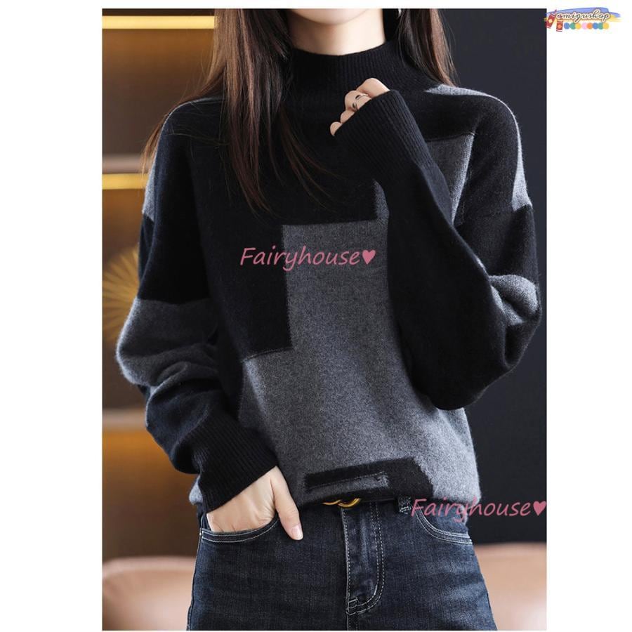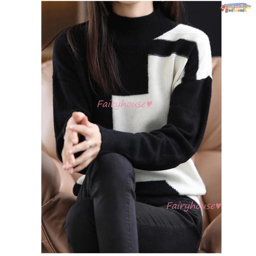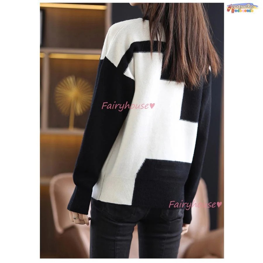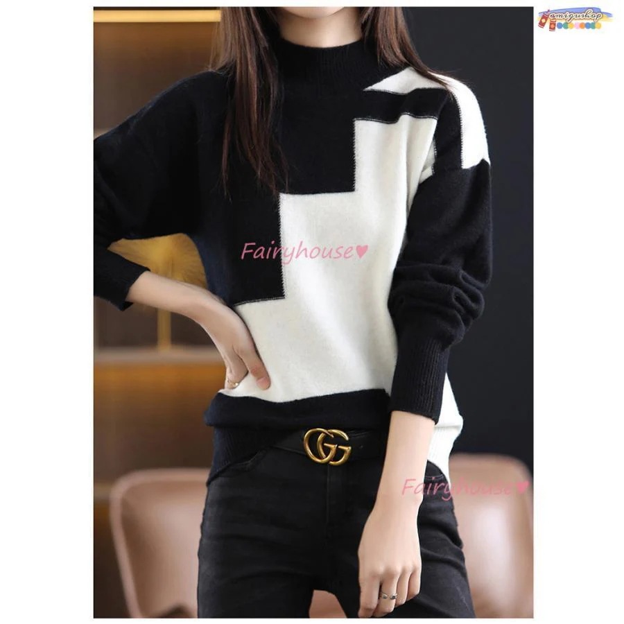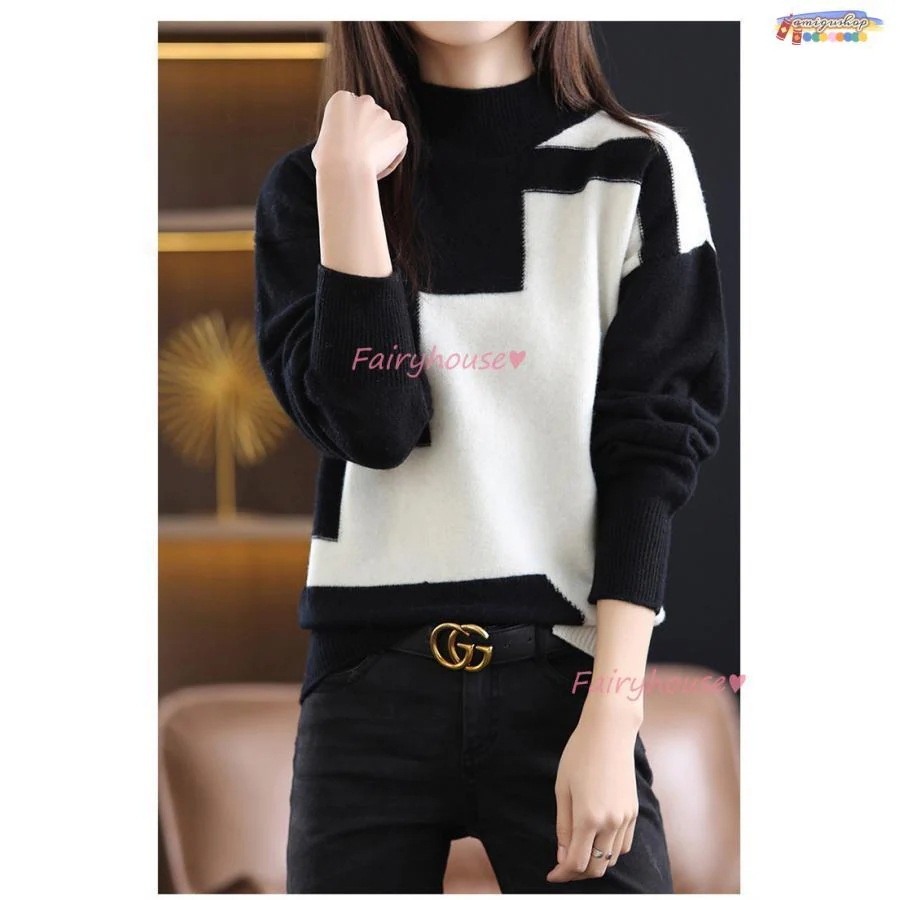 ニットトップス レディース 秋冬 40代 長袖セーター 幾何配色 ショート丈セーター ゆったりプルオーバー オシャレ韓国風 大人ニットインナー 50代 30代