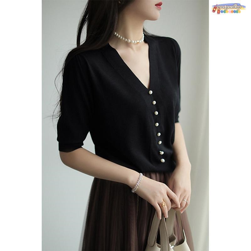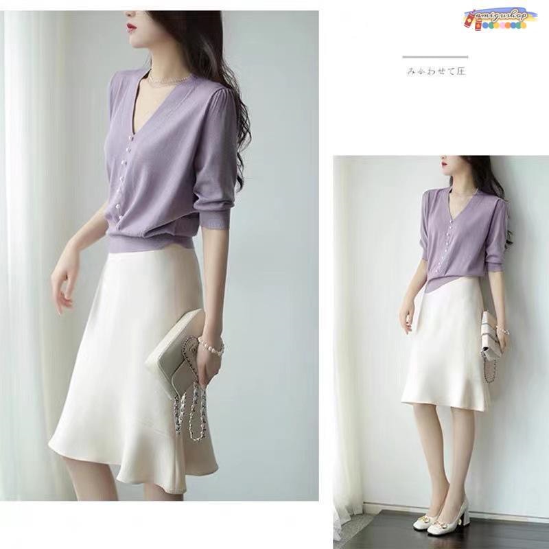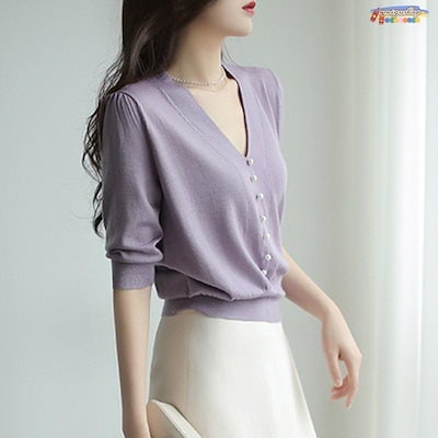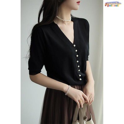 ニットトップス レディース Vネック 長袖 ニットセーター 無地 ボタン飾り ゆったりプルオーバー オシャレ 大人ニットインナー ニット