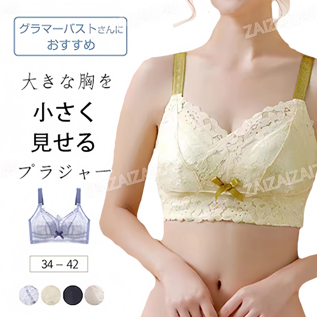 大きな胸を小さく見せる レースブラセット ノンワイヤー 上下セット 超薄型バストアップ ブラショーツセット 超盛れる セクシー ブラ
