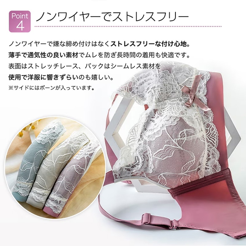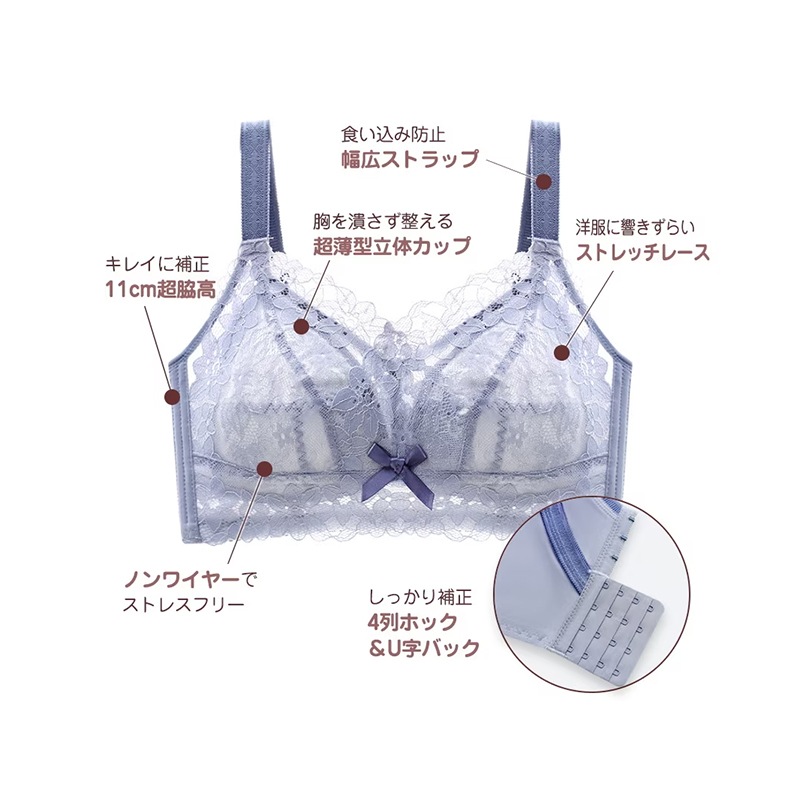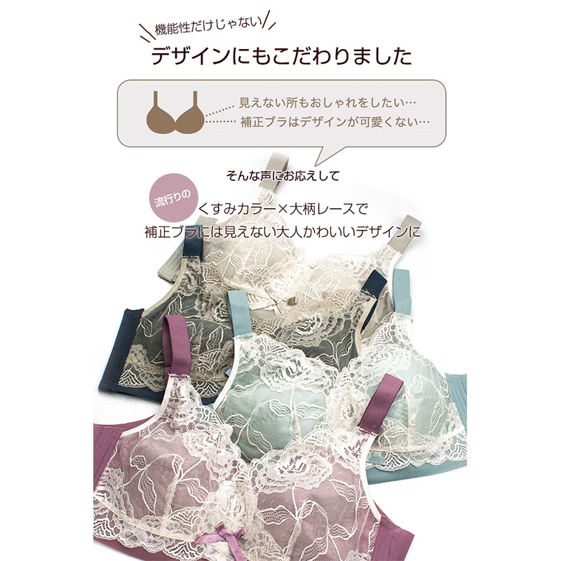 ブラジャー 大きな胸を小さく見せる 脇高 脇肉ブラジャー 補正 垂れ防止 痩せ見え 大きいサイズ 下着 上下セット ノンワイヤー ブラショーツセット ブラ