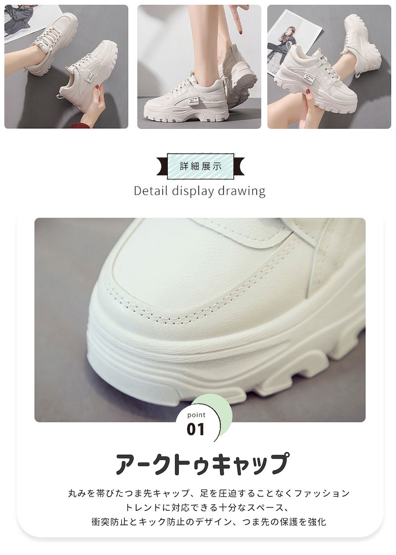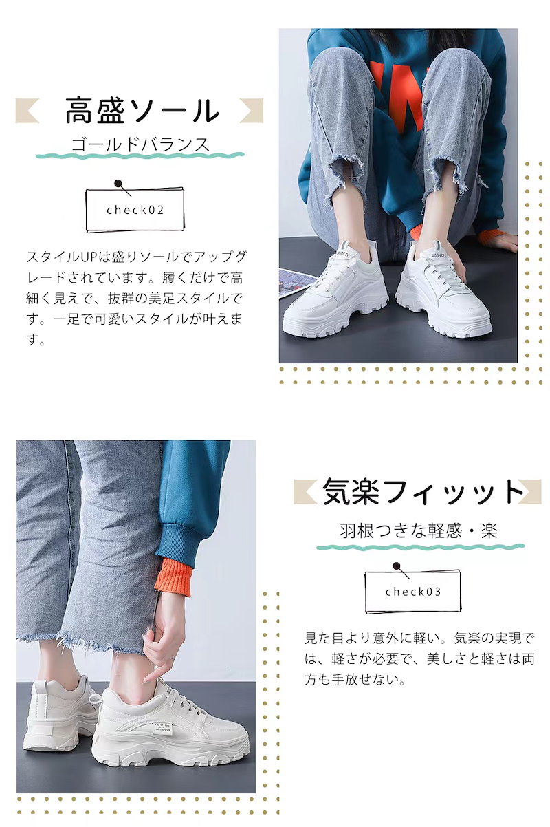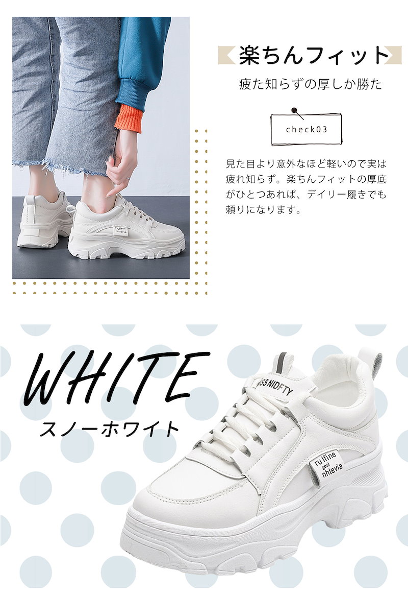 厚底 ダットスニーカー 美脚 スニーカー トレンド カジュアルシューズ 靴 レディース 通学 通勤 白 韓国靴 シューズ トレンド 運動靴ダッドスニーカー