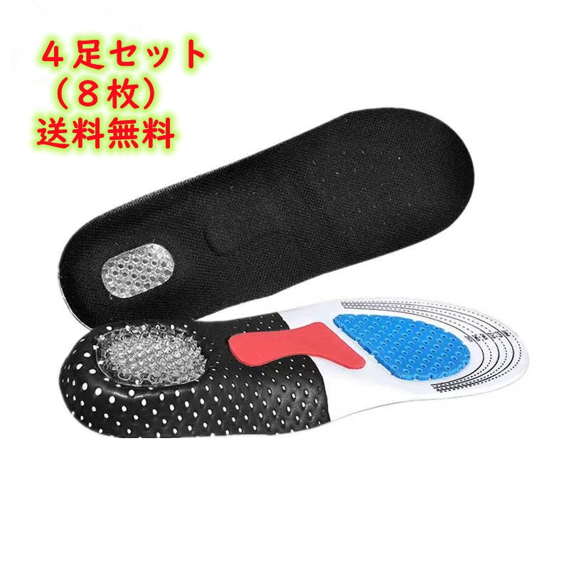 国内24時間内発送 インソール 4足セット8枚 衝撃吸収 メンズ レディース 靴の中敷き シークレットインソール