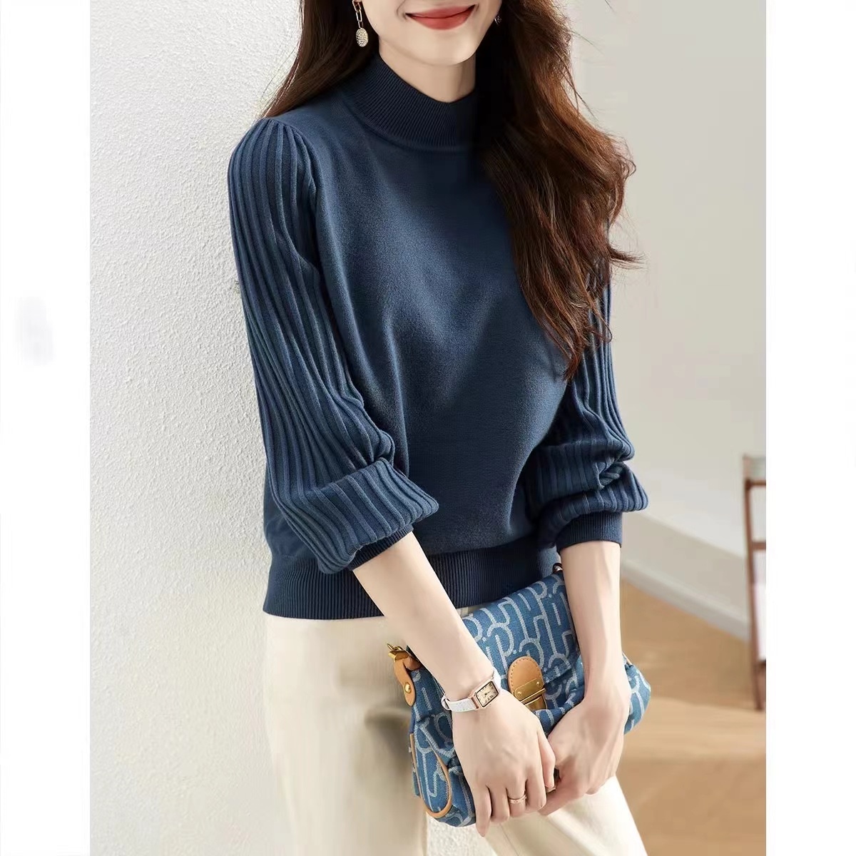 2024新作韓国ファッションニットTシャツ 長袖 7カラー秋ニット レディース 無地 ニット プルオーバー リブニット トップス