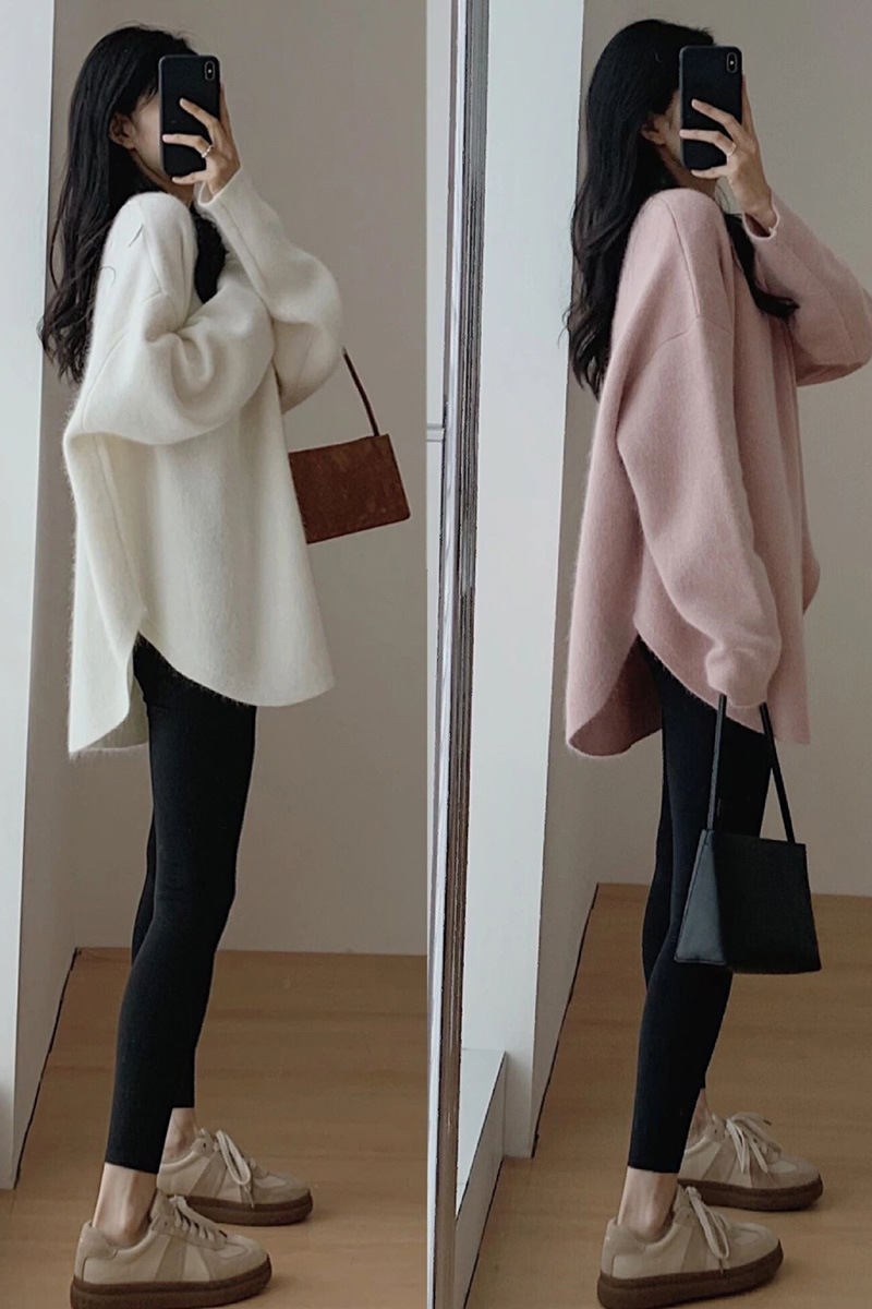 カシミヤタッチニットセーター レディースゆったりスウェット 秋冬 高級感 長袖ニットトップス 韓国ファッション 優しい百掛け カシミヤタッチ ベーシックニット