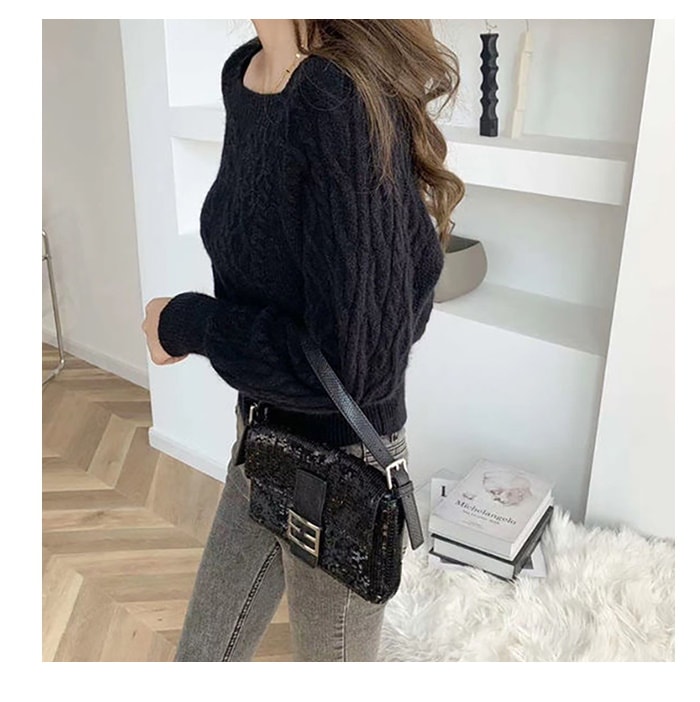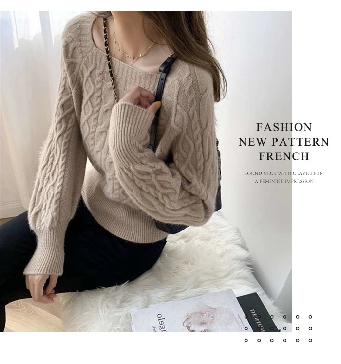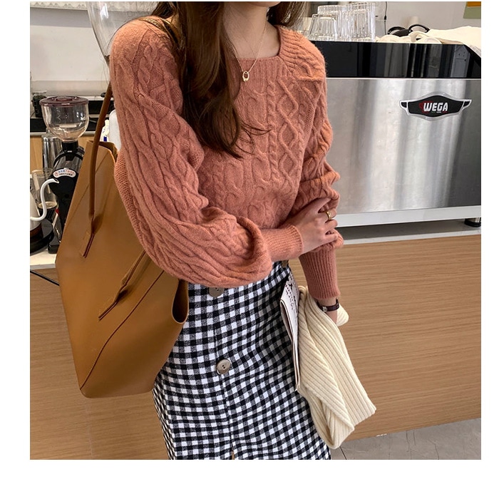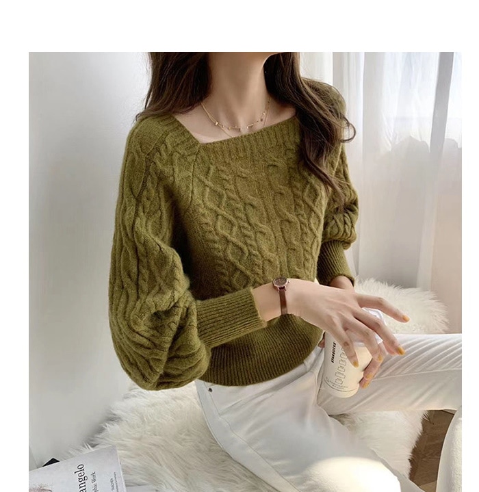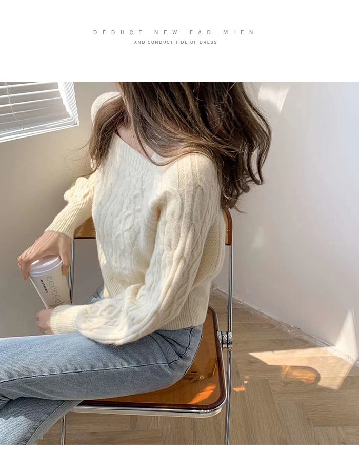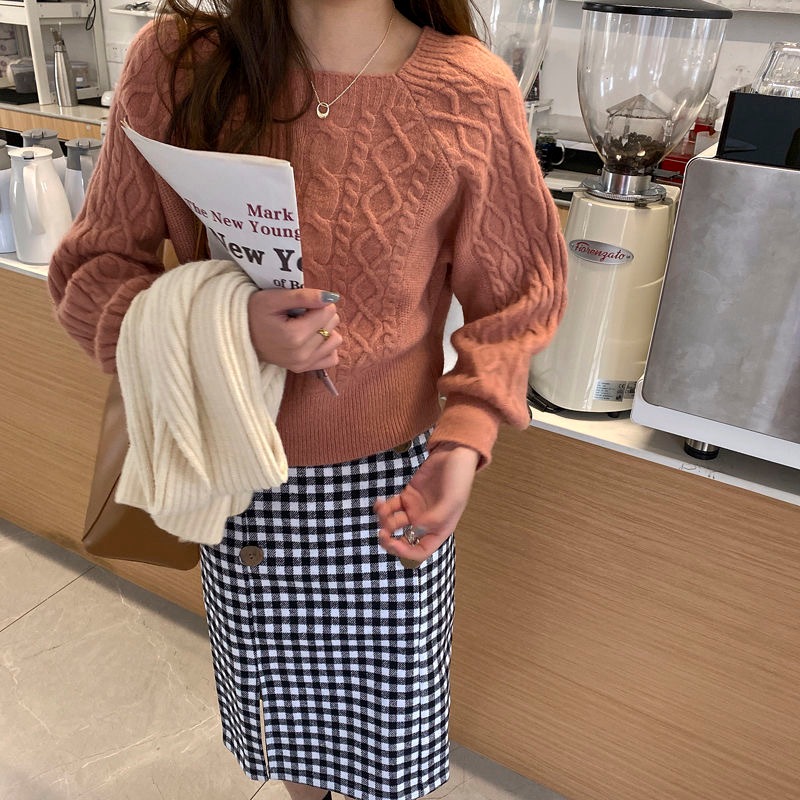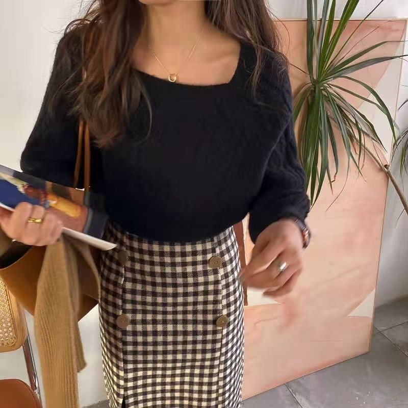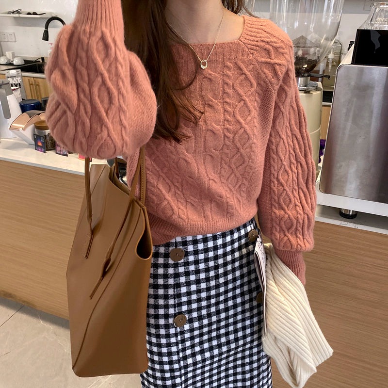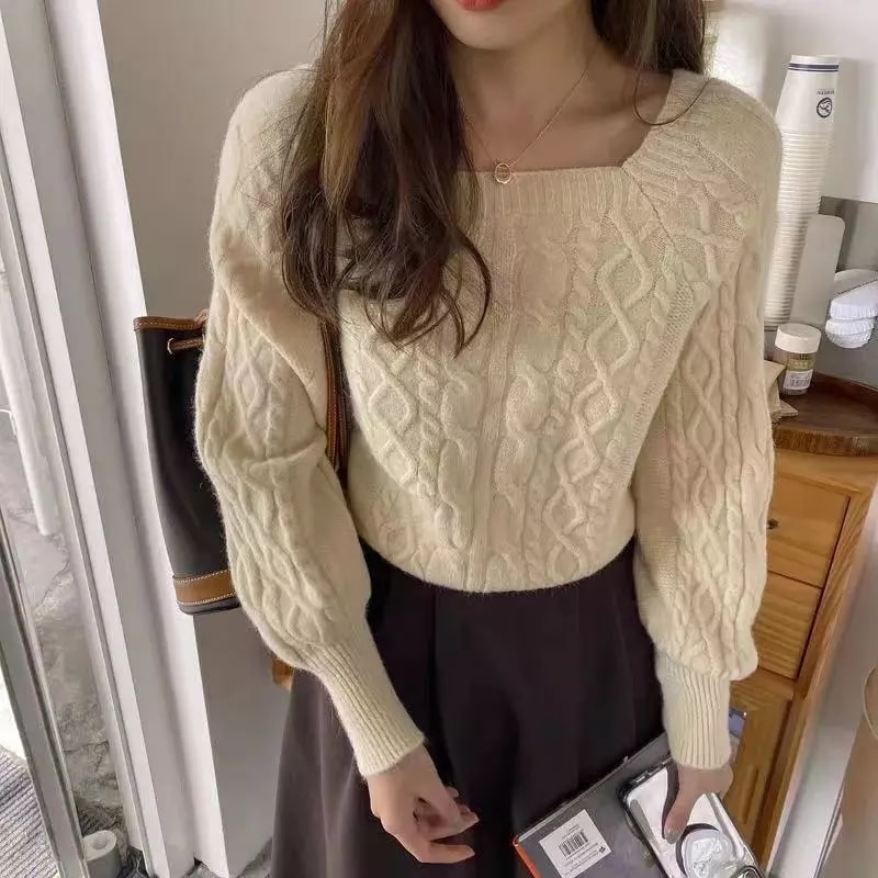 韓国ファッション 秋冬 ゆったりの スクエアネック セーター ショート丈 ニット 長袖カットソー ニット