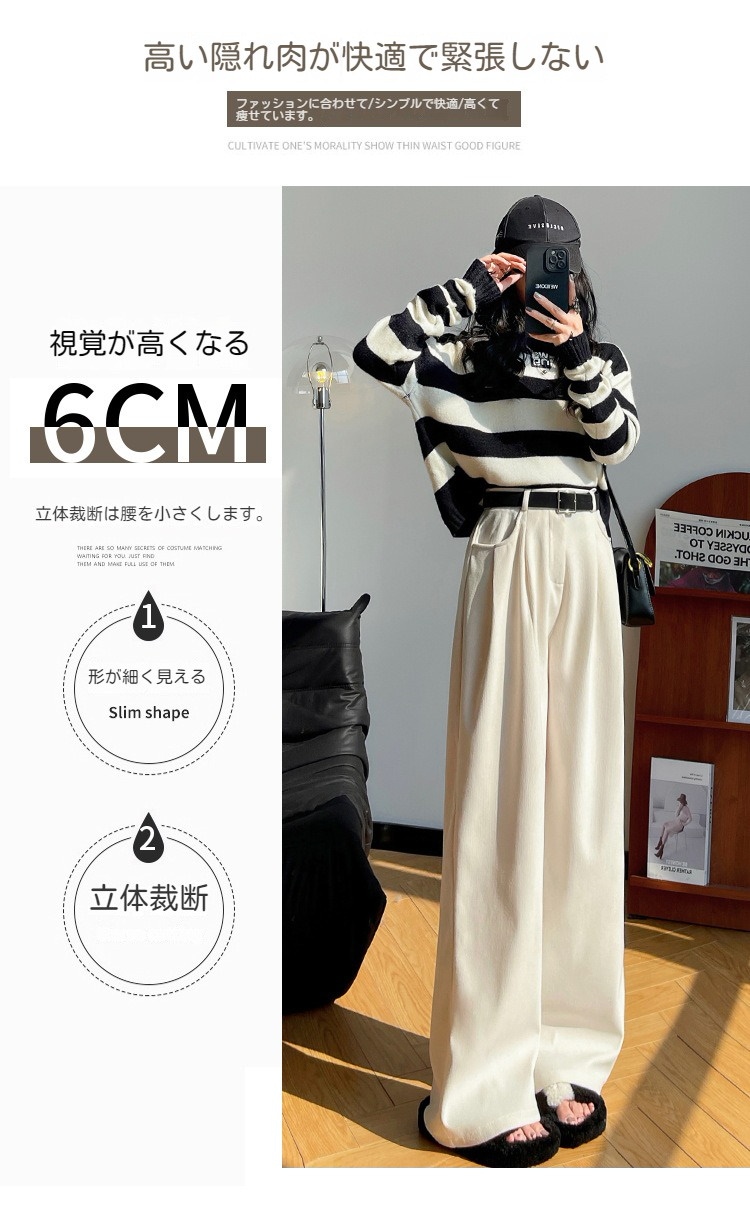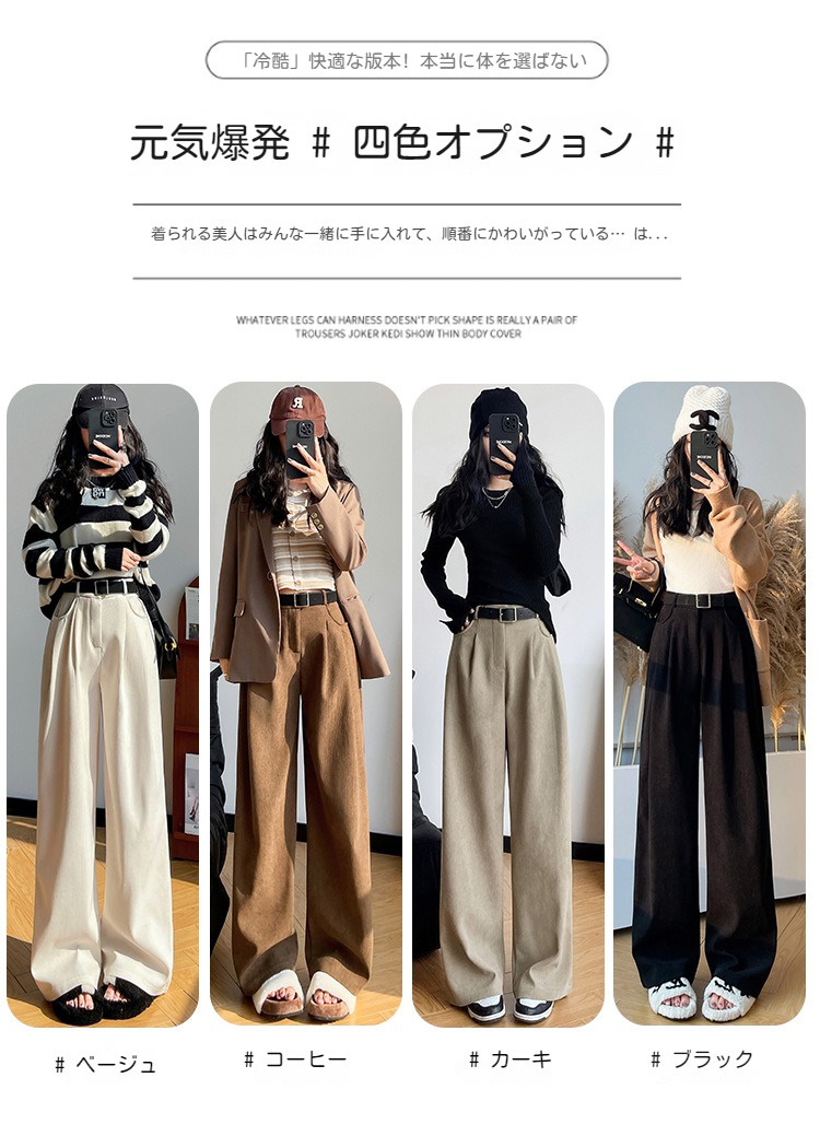 コーデュロイ ロングパンツ レディース 秋冬 着痩せ ゆったり カジュアル ストレート ハイウェスト 黒 白 カーキ コーヒー