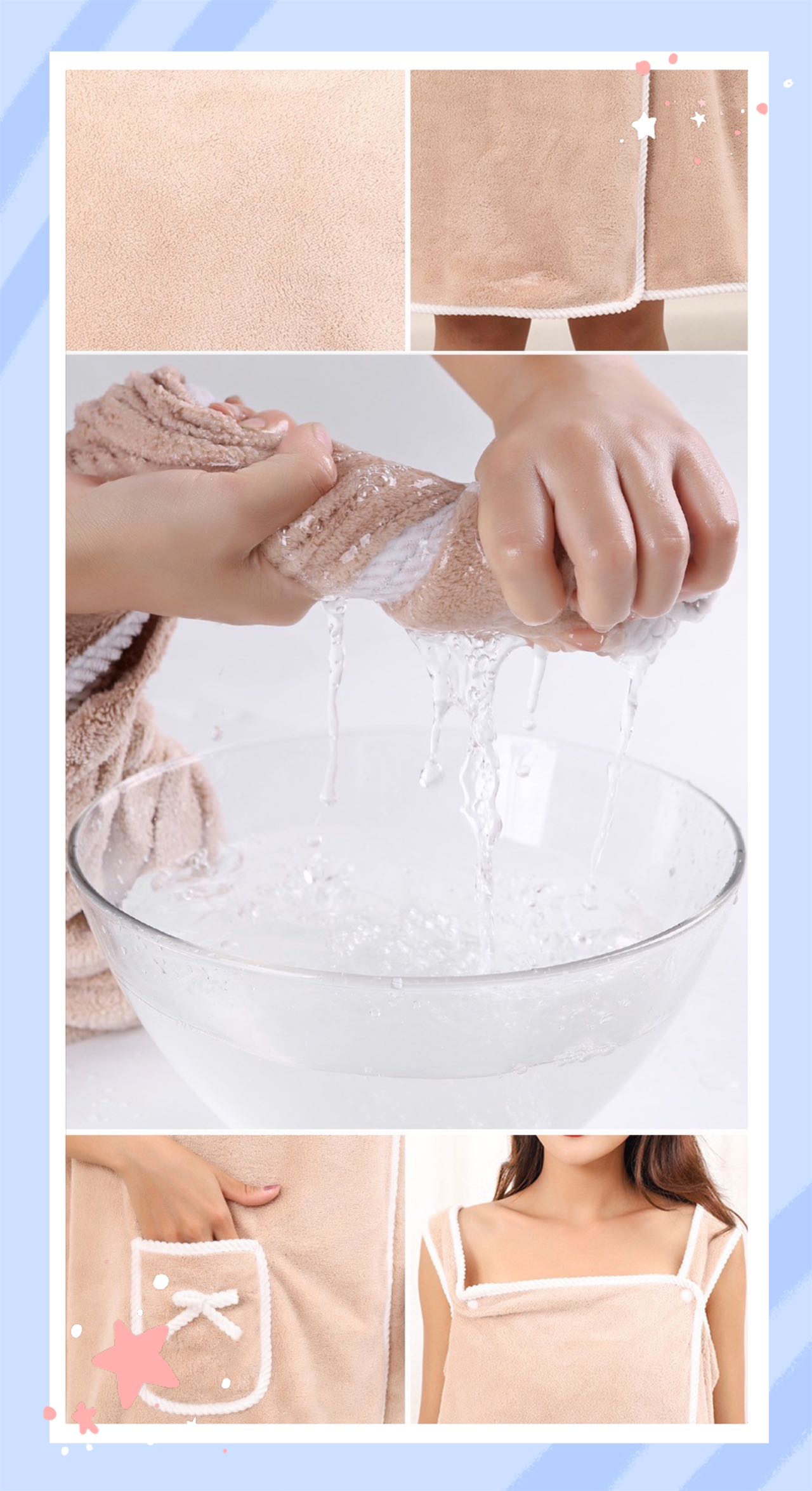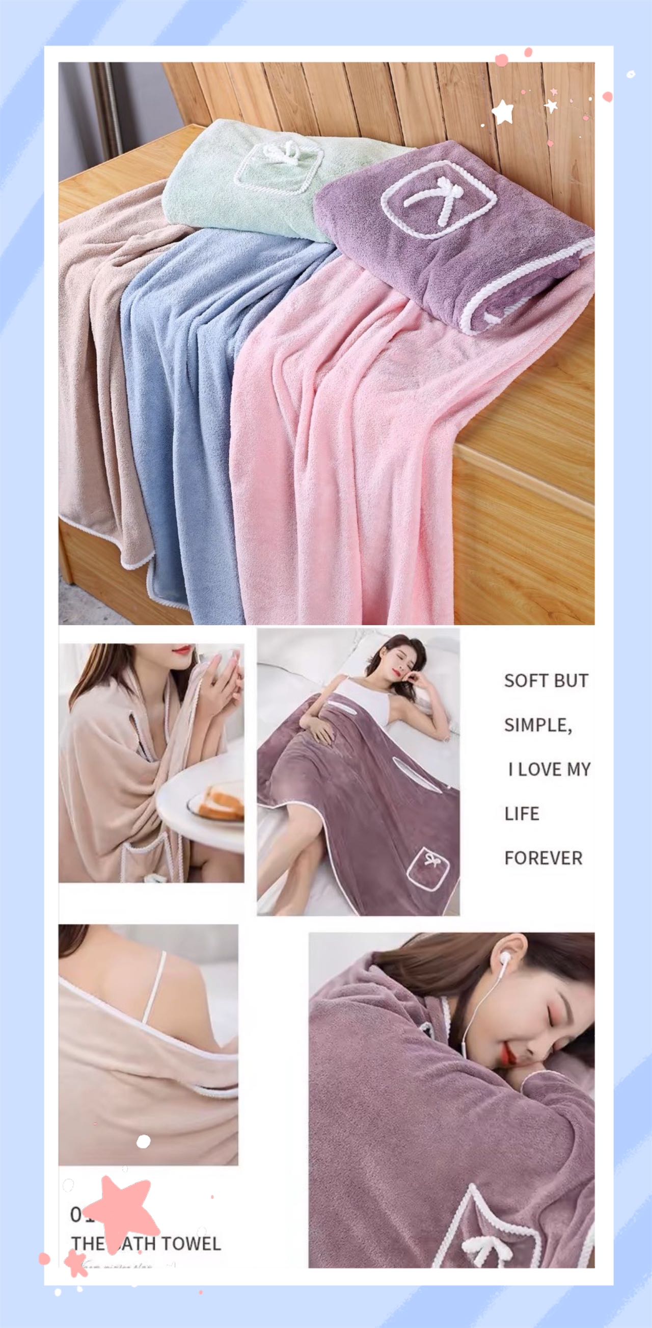 Sontinia 肌触り抜 天使の着るバスタオル バスローブ 大きい サイズ バスタオル タオル ラップタオル レディース 海 プール ジム 旅行 大判 可愛い リボン 無地 ポケット付 マイクロファイバ