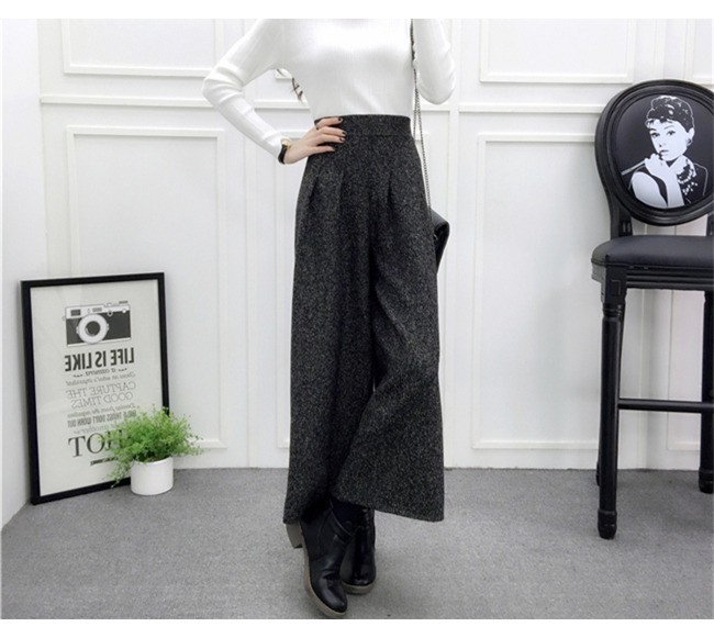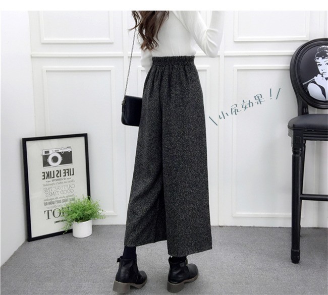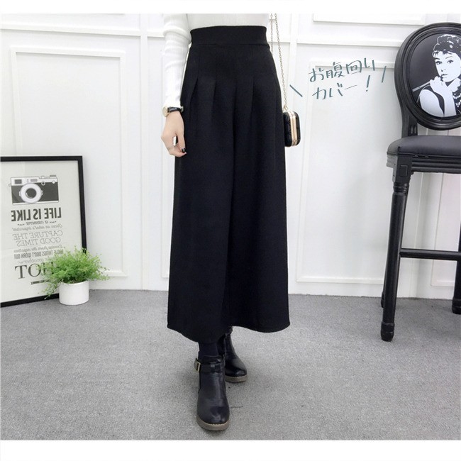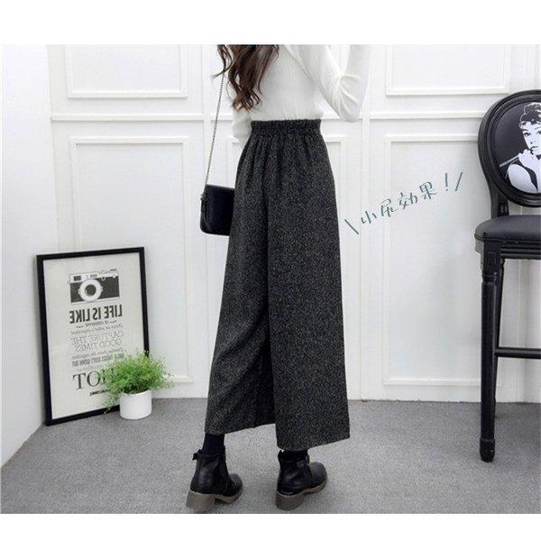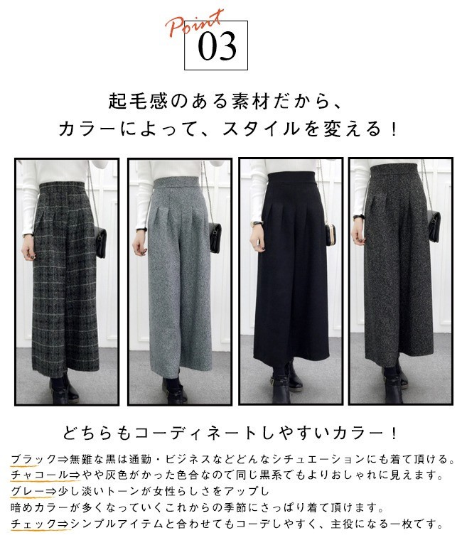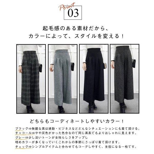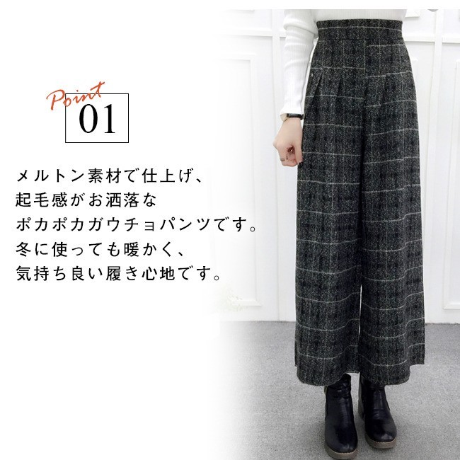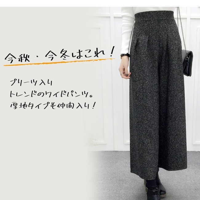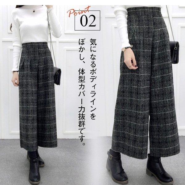 ワイドパンツ ガウチョパンツ 春 冬 レディース 9分丈 ハイウエスト タック入り 大きいサイズ チェック 無地 きれいめ 秋冬 ウエストゴム 厚手 ゆったり