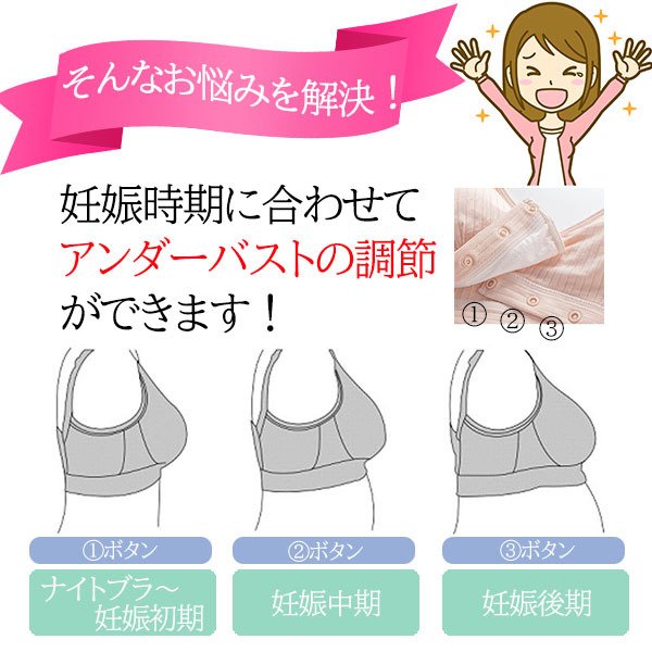 マタニティブラ 授乳ブラ ナイトブラ 下着 レディース アンダー調整 前開き フロントボタン ノンワ 下着