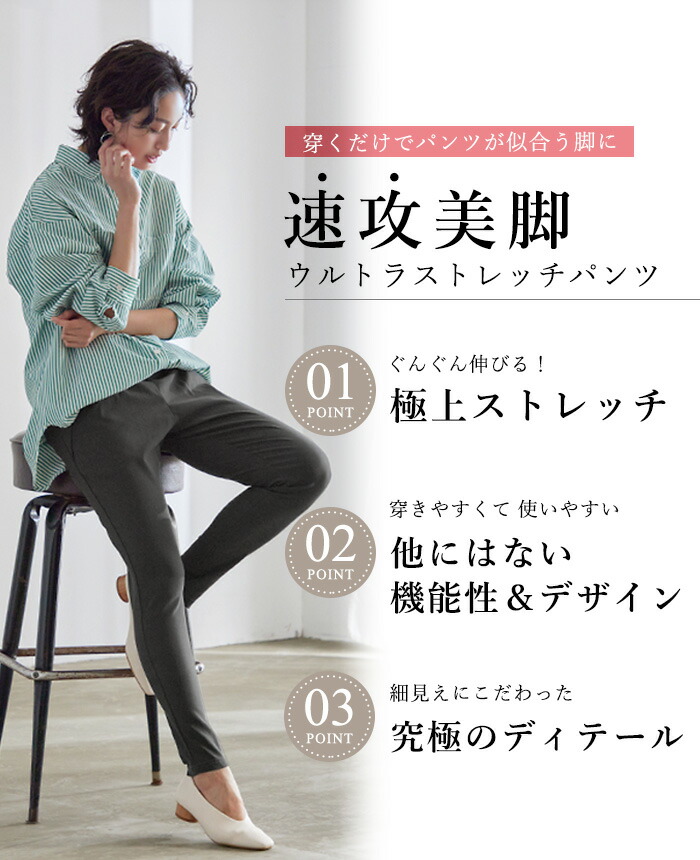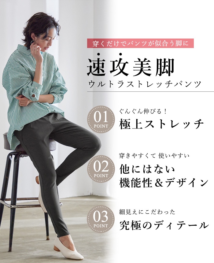 Happy急便 [SALE]累計55万本販売 速攻美脚 テーパードパンツ 2253 クメ ロングパンツ