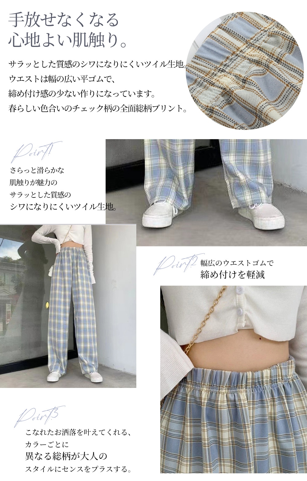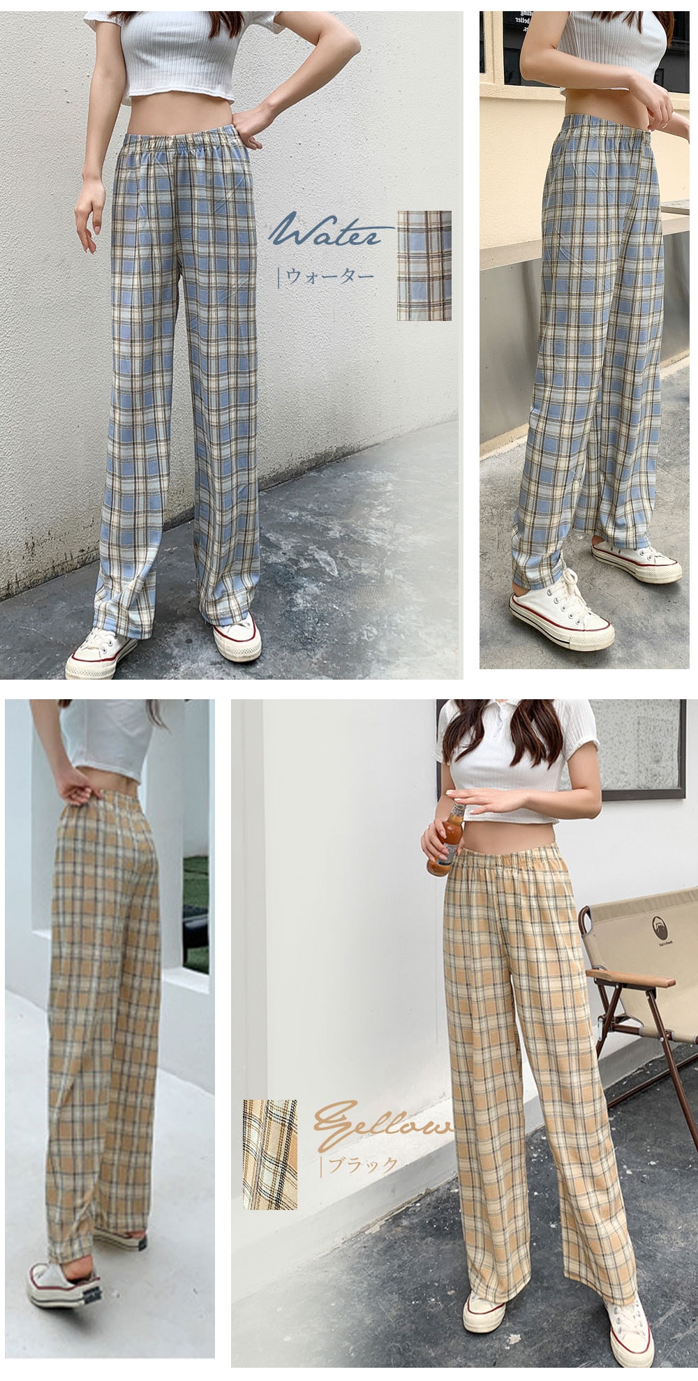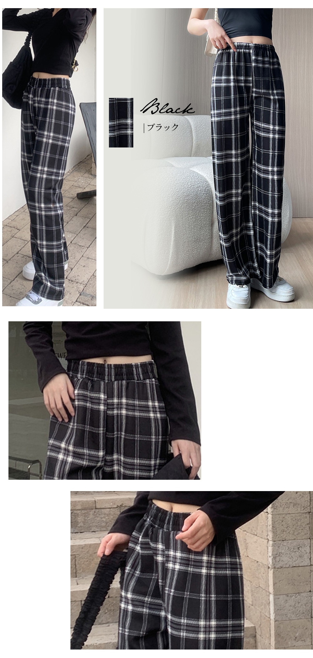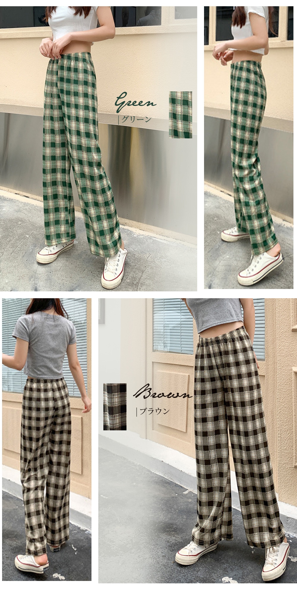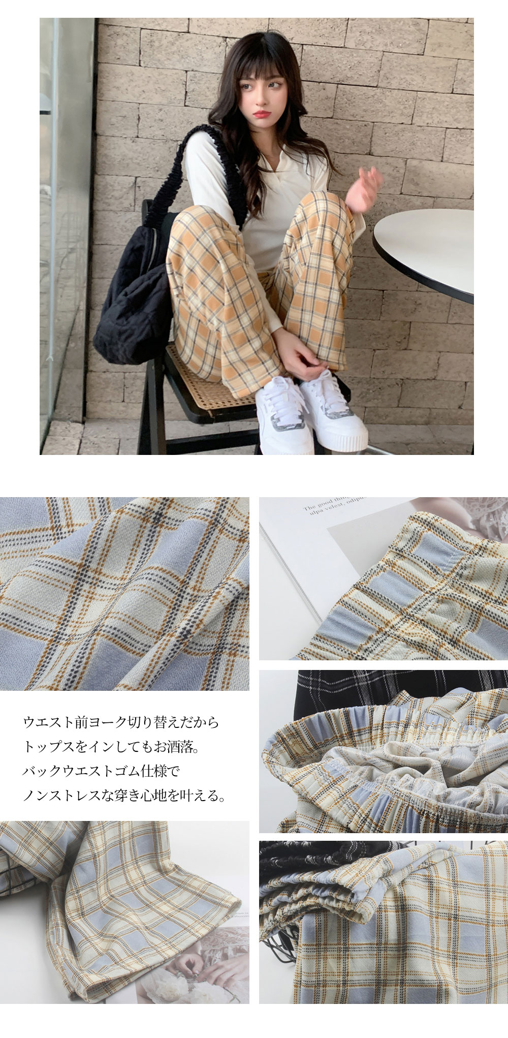 選べる2type 11color チェック ワイドパンツ カジュアル ワイドパンツ 無地 チェック柄 韓国ファッション ロングパンツ