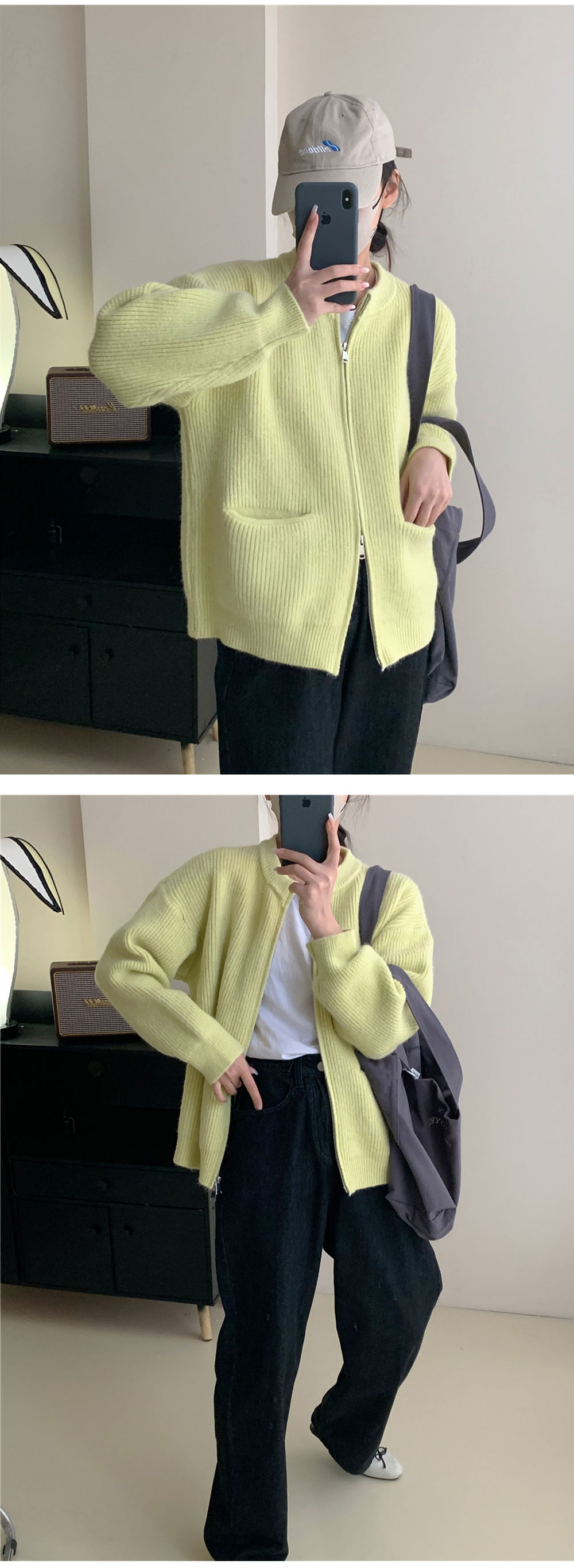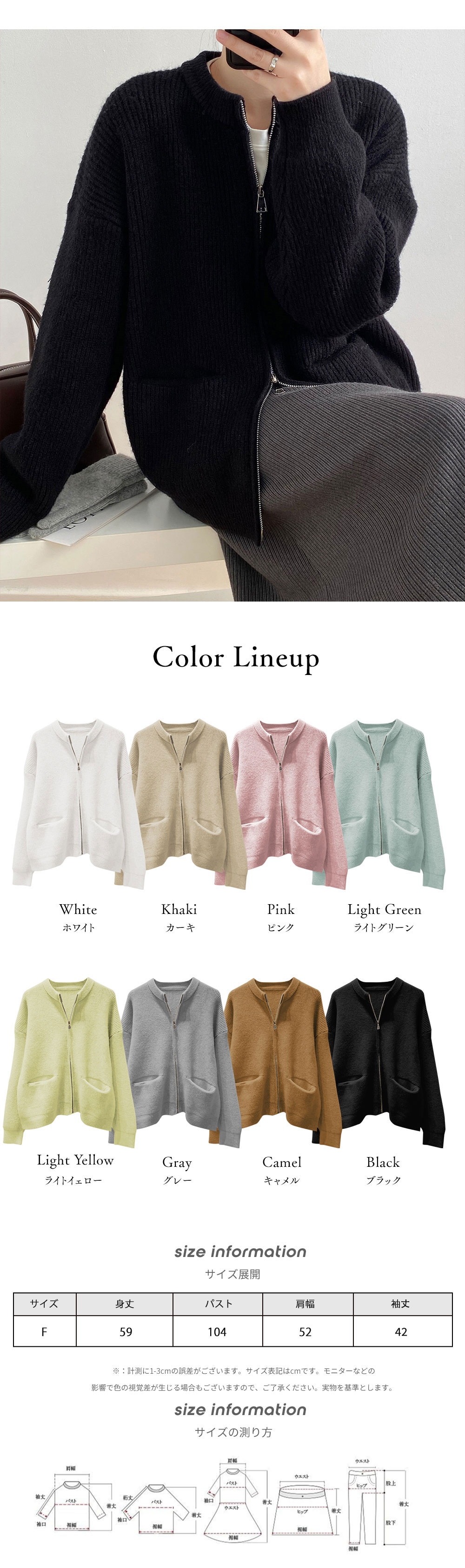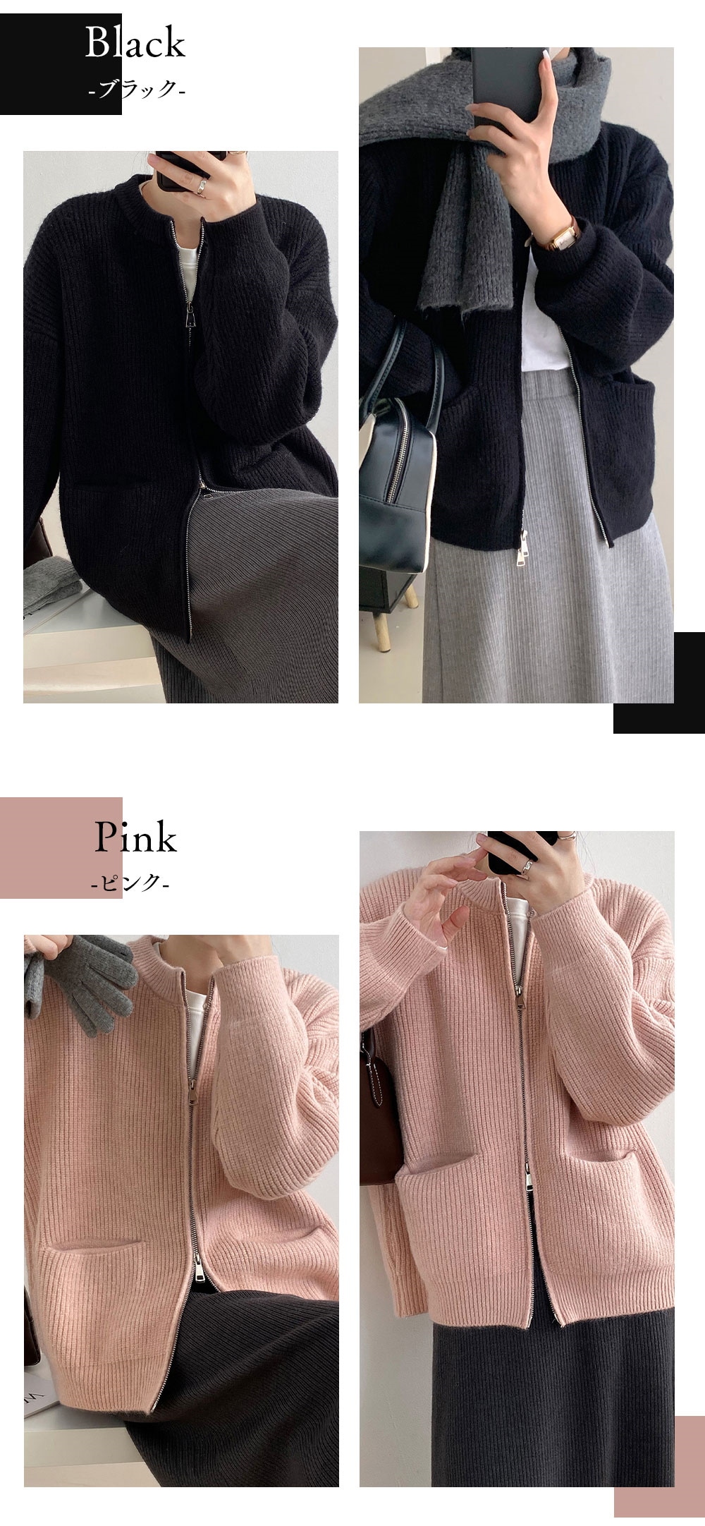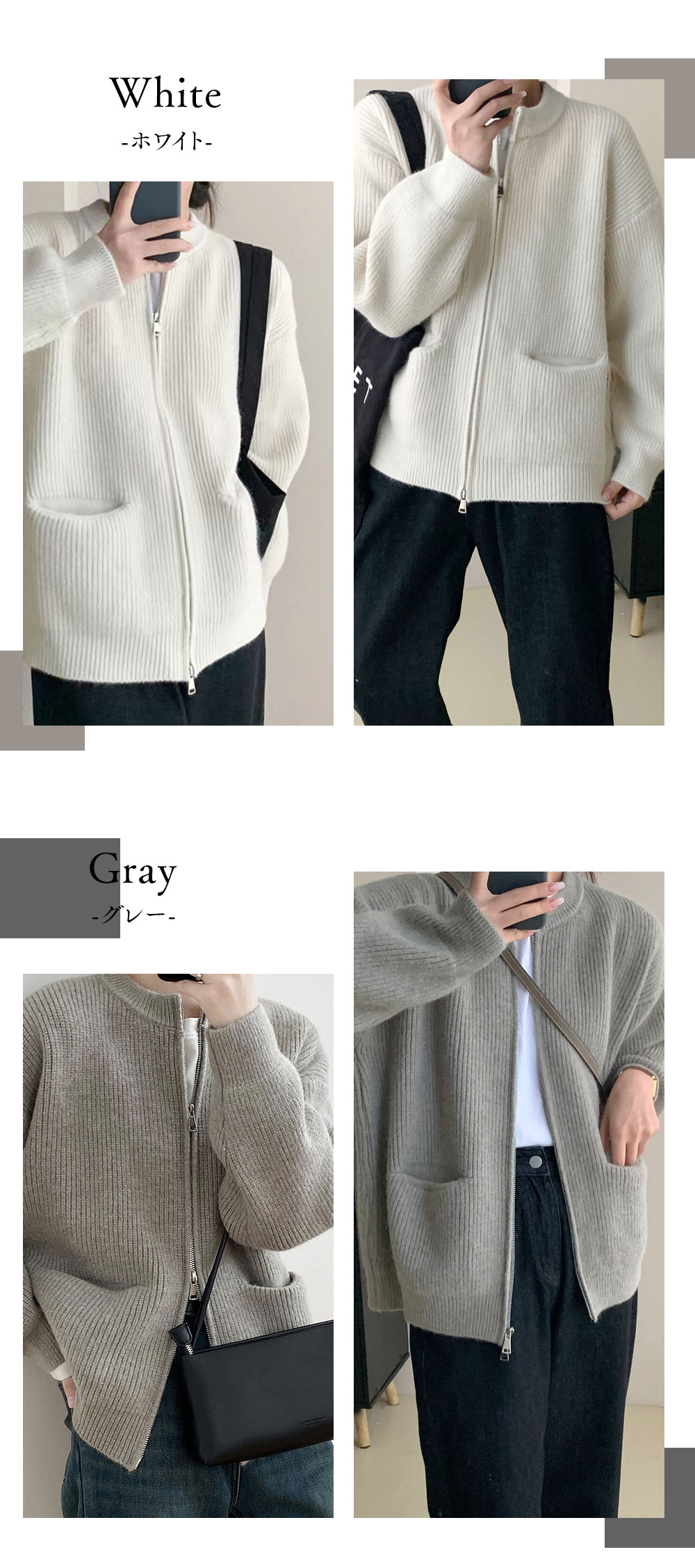 ダブルジップ カーディガントップス アウター カーディガン ニットセーター レディース 重ね着上手秋冬 長袖 ラウンドネック ニット 厚手 ショート ダブルジップ カーディガン