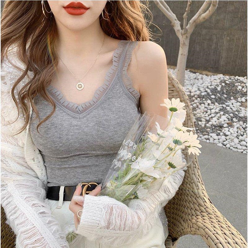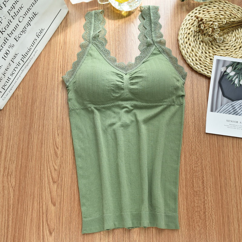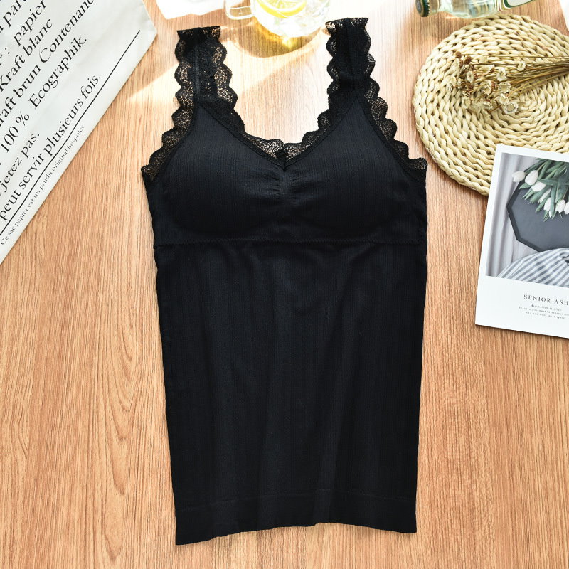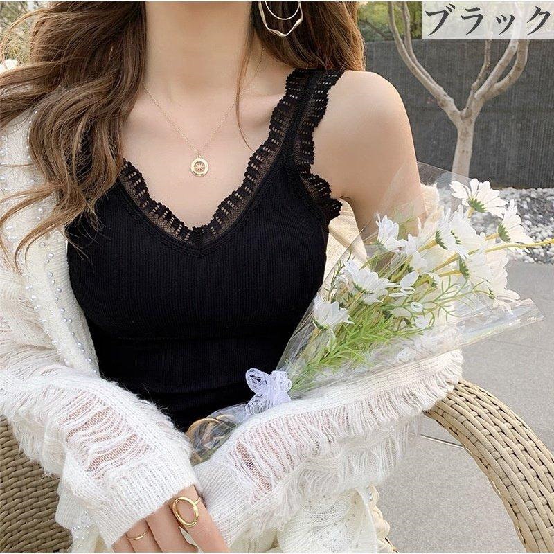 可愛いブラトップ2枚セット パッド付き キャミソール 女性 インナー 下着 肌着 Vネック カップ付き ブラキャミソール レース シンプル お洒落