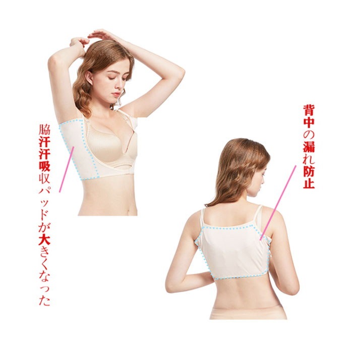 大きいサイズ追加 2枚入り 汗取り インナー キャミソール キャミ ショート丈 ハーフトップ 脇 背中 脇汗 ガード レディース 汗取りパッド付インナー 脇汗インナー 脇汗 インナー